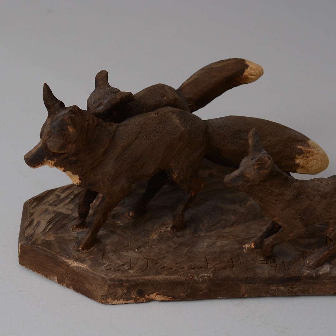 486442. ERIK REIMHULT. FIGURGRUPP, RÄVFAMILJ.