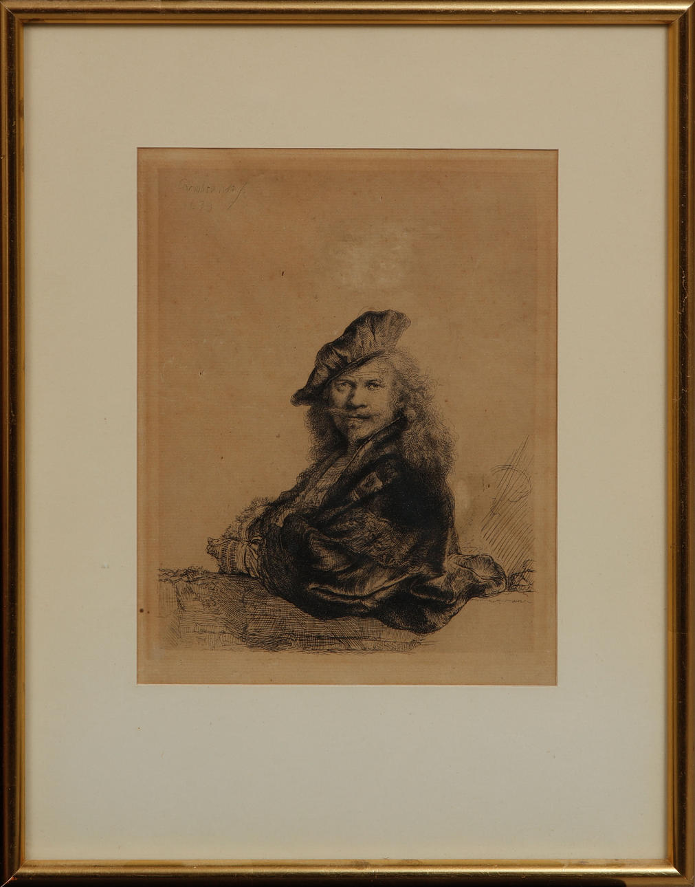 "The card player", bildmått ca 9 x 8 cm, rammått 37 x 27 cm. "Self portrait leaning on a stone sill", bildmått ca 20 x 16 cm, rammått 36 x 28 cm.