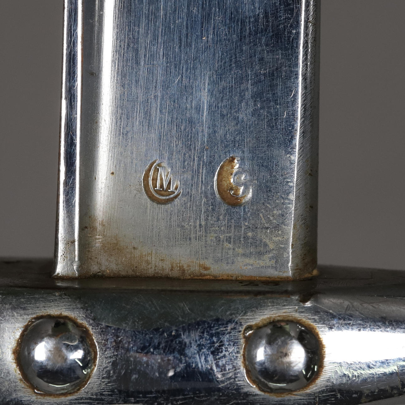 Tillverknings inskription på klingrygg.