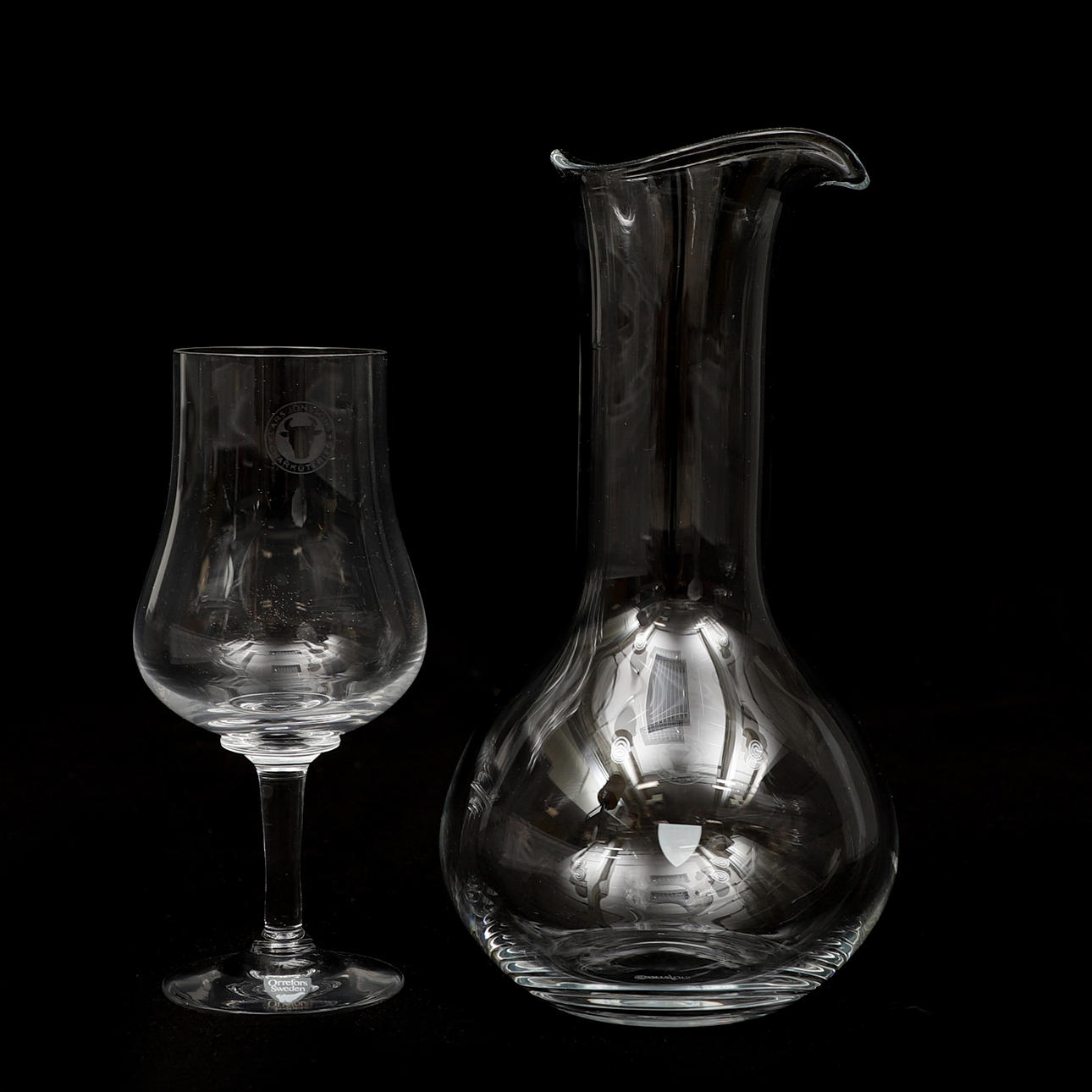 4868090. VINPROVARGLAS, 10 st samt karaff, Orrefors.