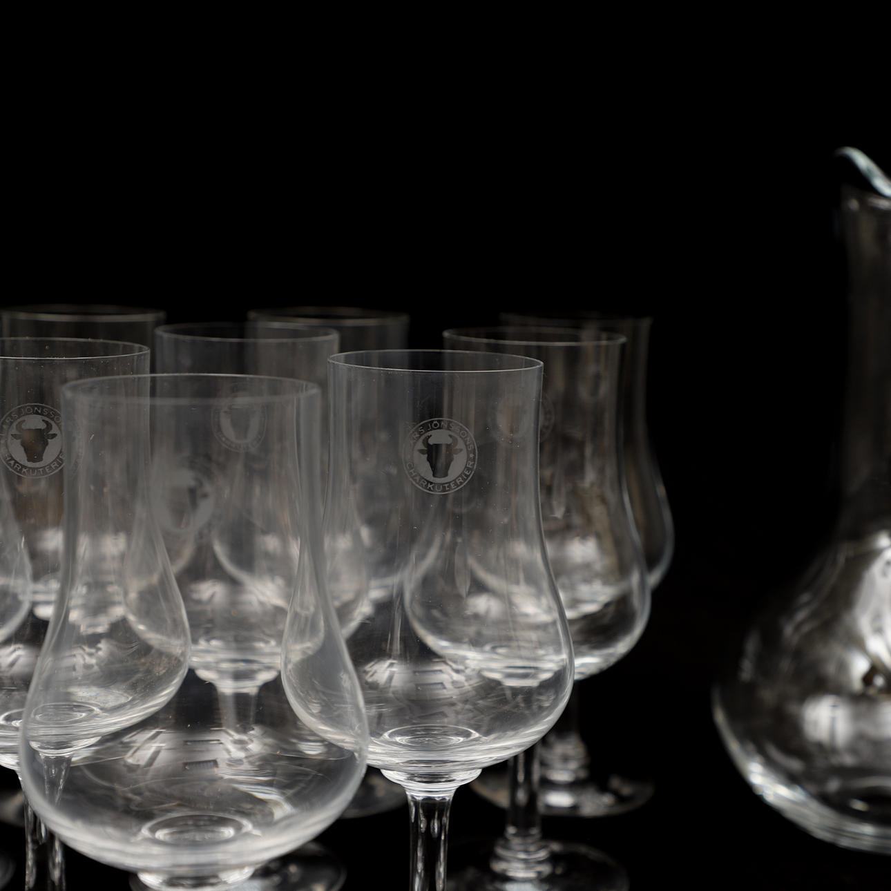 VINPROVARGLAS, 10 st samt karaff, Orrefors.