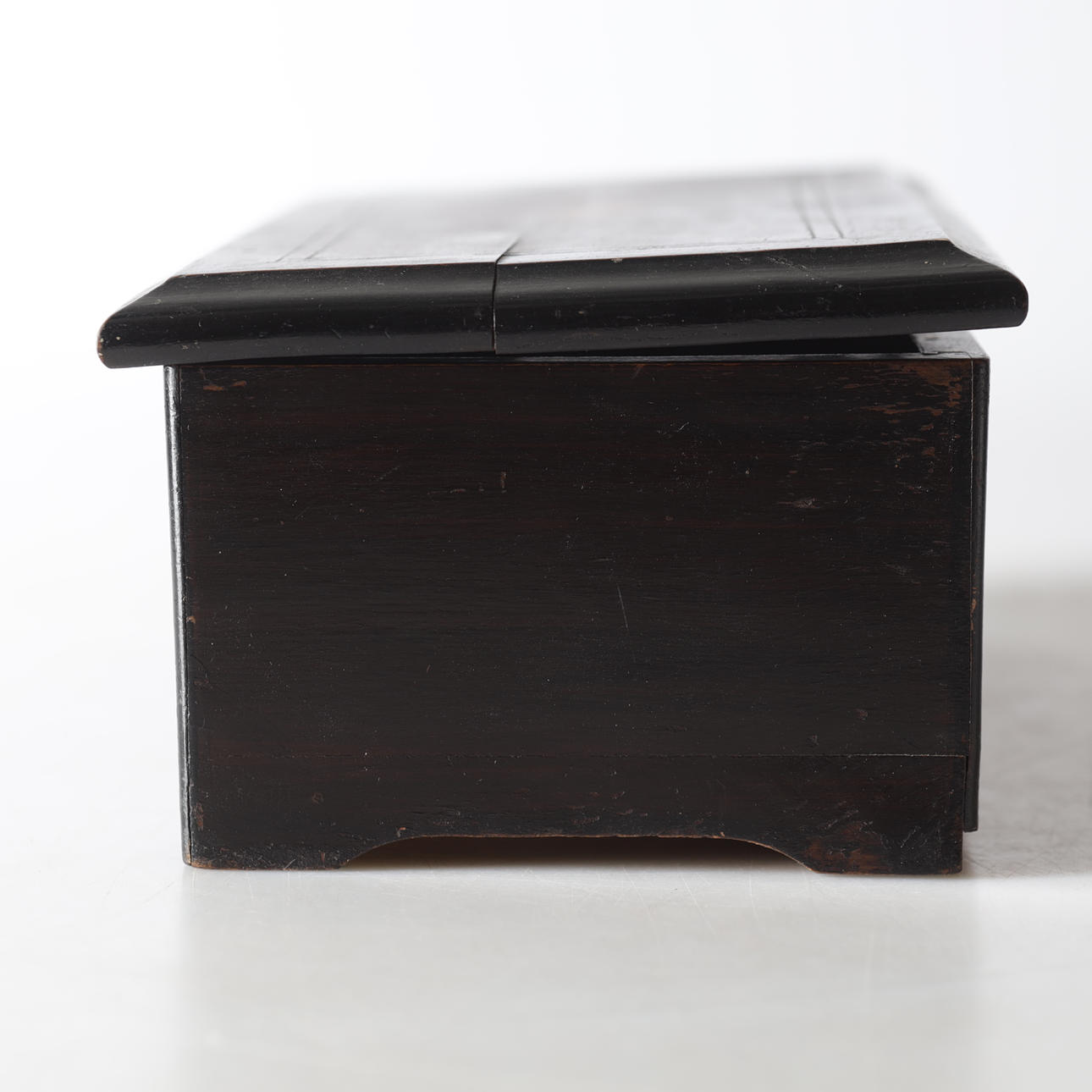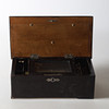 Cylinderspeldosa med längd 33, bredd 17, höjd 12,5 cm.