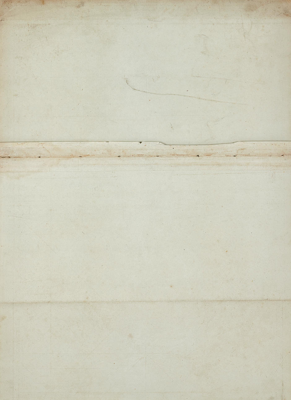 Gulnat, fläckar. Veck i nedre vänstra hörnet. Revor (10-20mm) på bladets övre kant (delvis i bilden). Övre hörnen med veck. Reva (10mm) på bladets högra kant. Veck och smuts längs bilden övre del. Två horisontella vikveck, och med svag missfärgning i vecken.