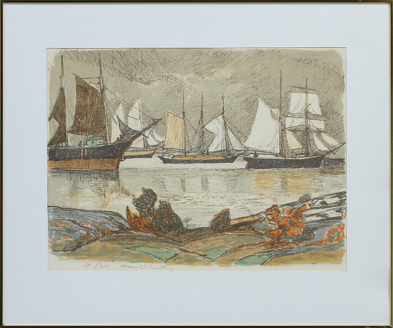 487266. HARALD LINDBERG. Segelfartyg, litografi, sign o numrerad 89/310.
