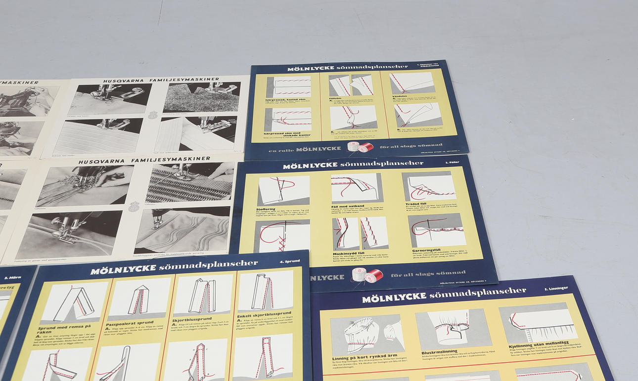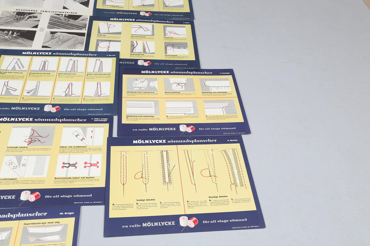 4872841. PLANSCHER, 10 st, Mölnlycke + 4 planscher, Husqvarna.