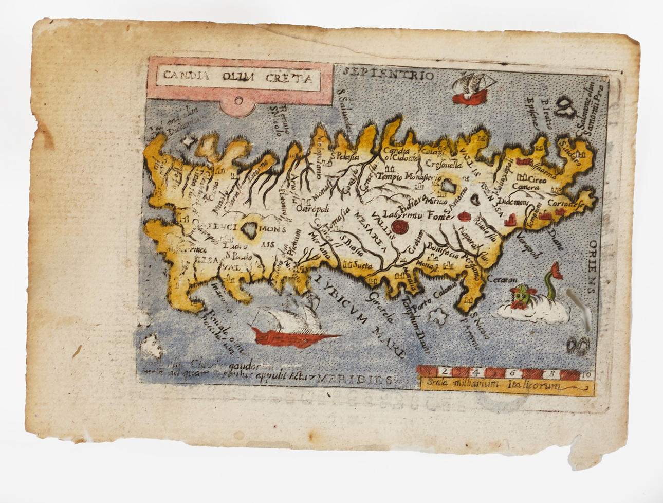 [Ortelius] Gulnade, fläckar, fuktfläckar och skador (revor, hål, pappersförluster).