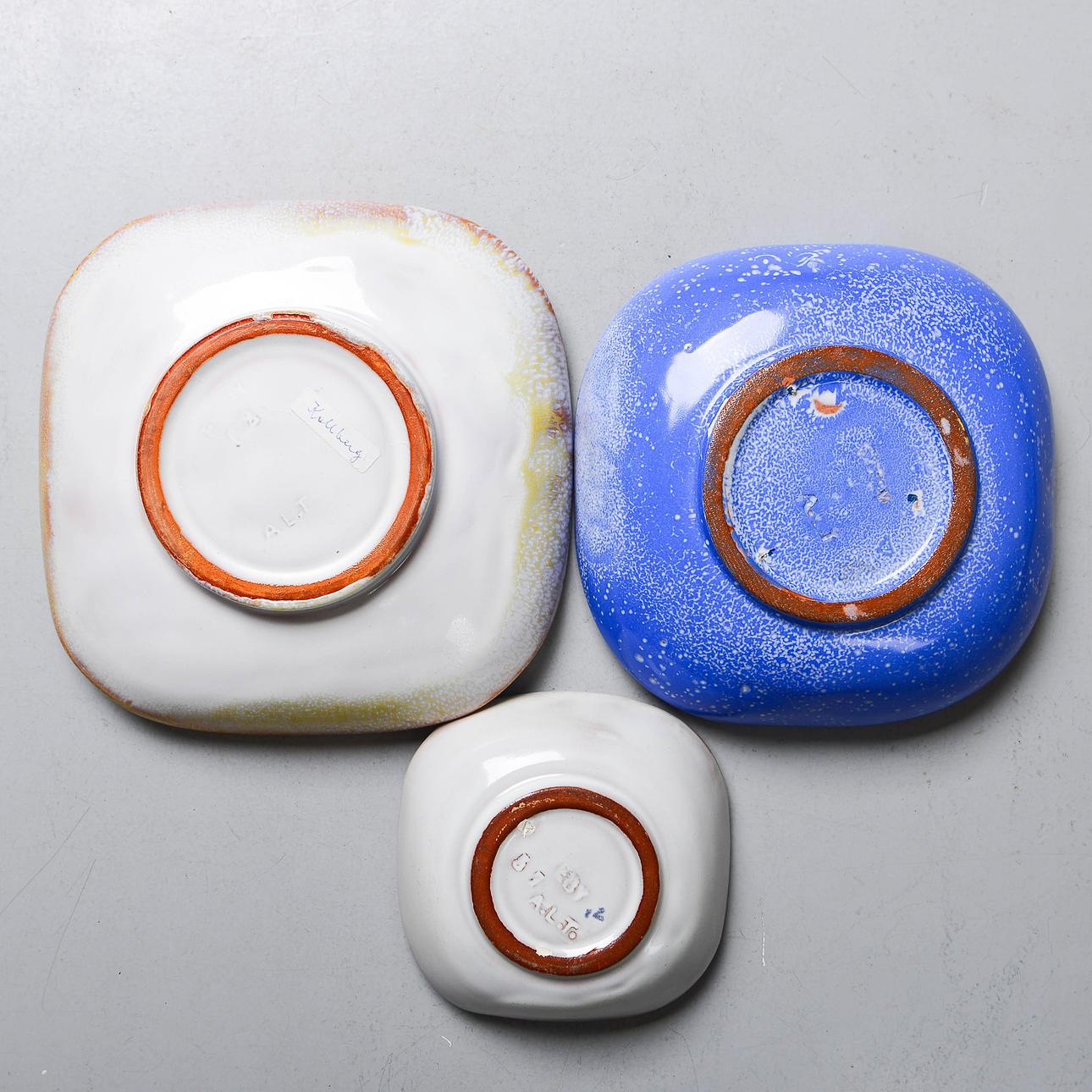 Glaserat lergods. Modell 57, 58 samt 62. Diameter 11,5-18,5 cm.