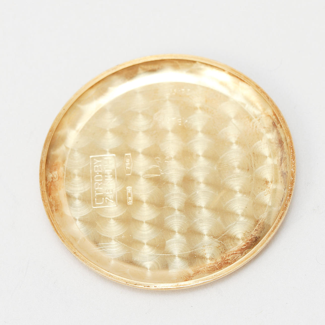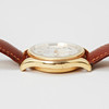 Märken, slitage. Fläckar/ missfärgningar på urtavla. Buckla på boettens ena sida. Fungerade vid katalogiseringstillfället. Ingen funktionsgaranti lämnas. Bruksslitage.