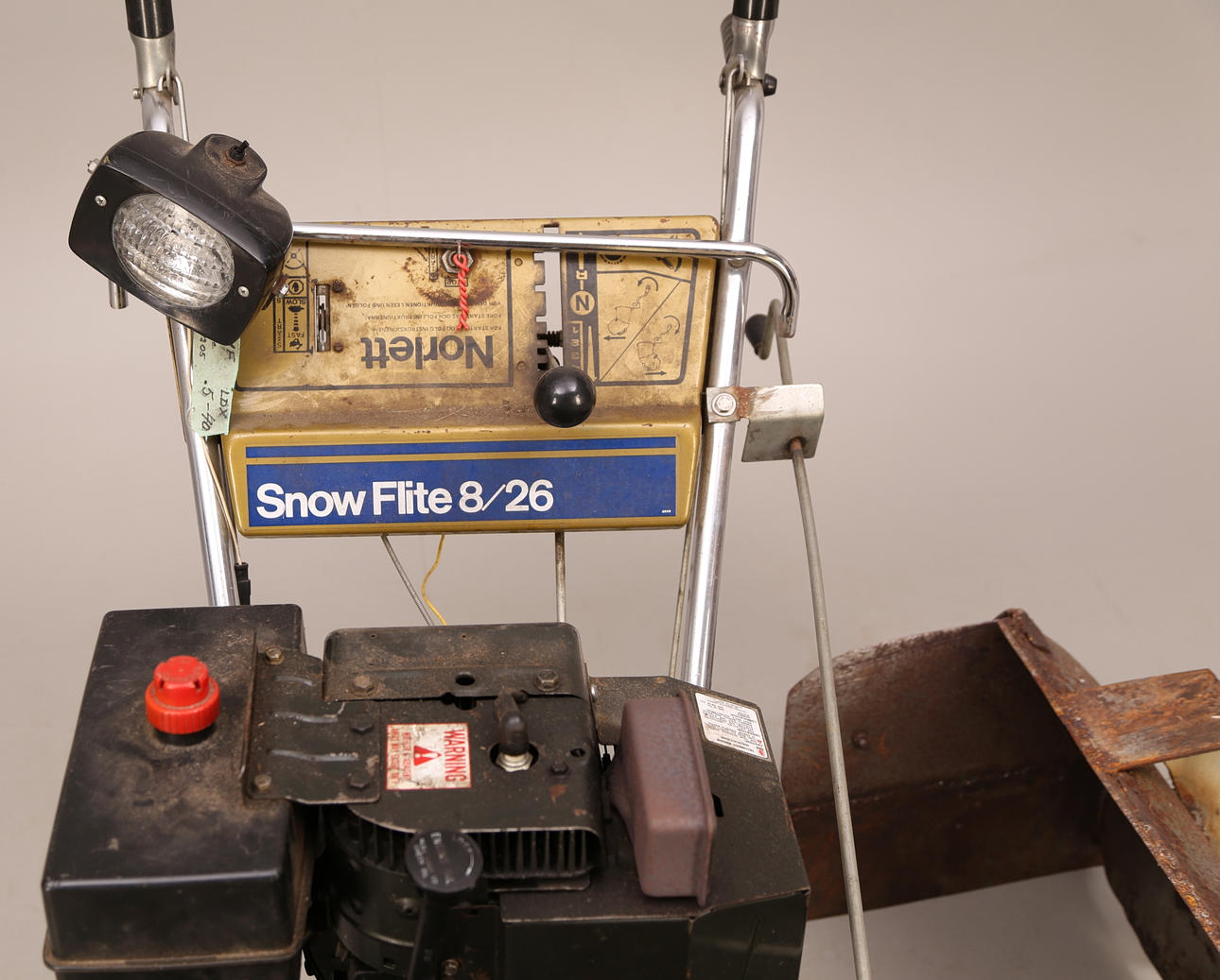 487767. SNÖSLUNGA med schaktblad, bensin, Norlett - Snow Flite 8/26, sent 1900-tal.