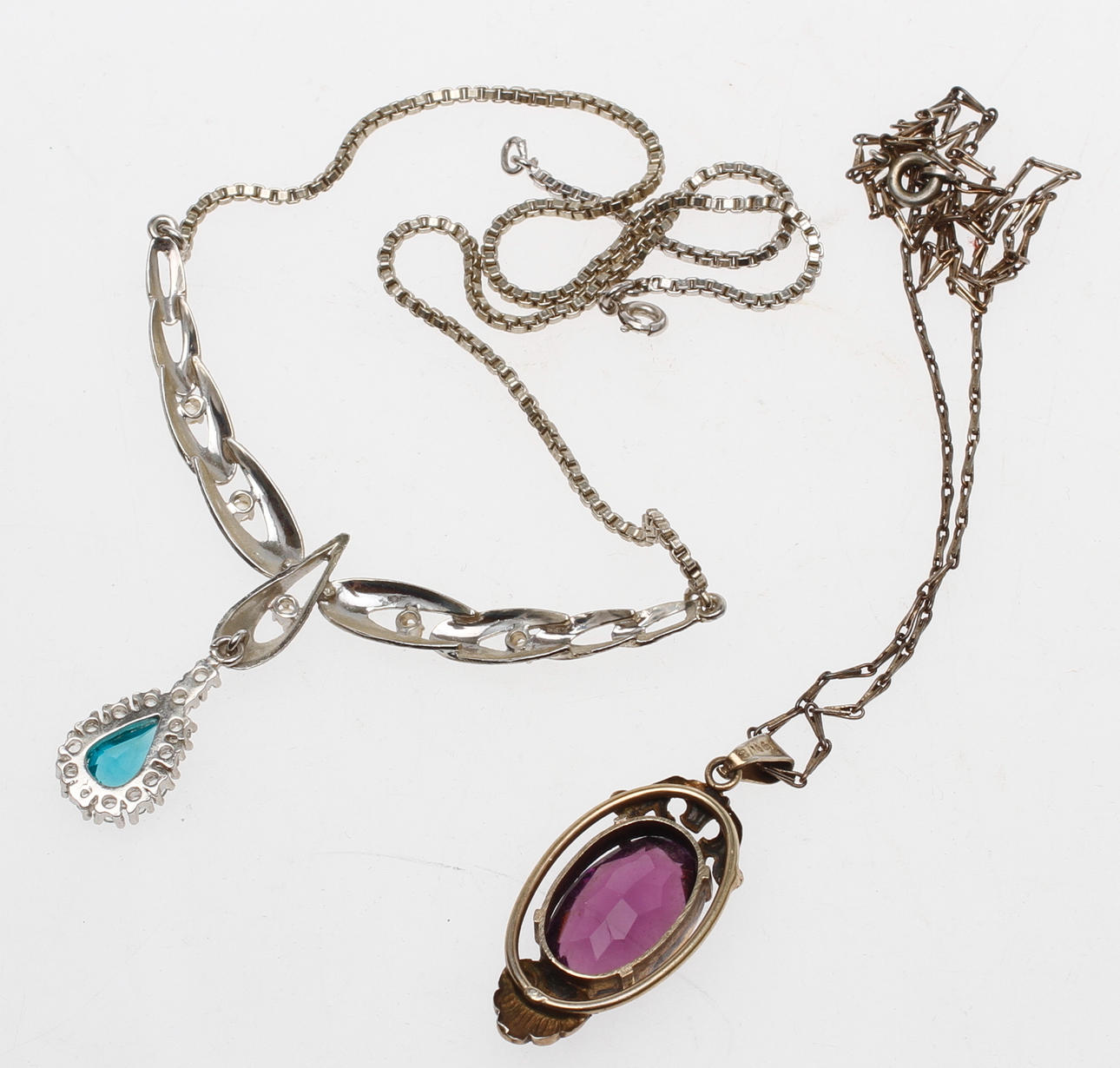 HALSBAND, 2st, silver med stenar, 1900-tal.