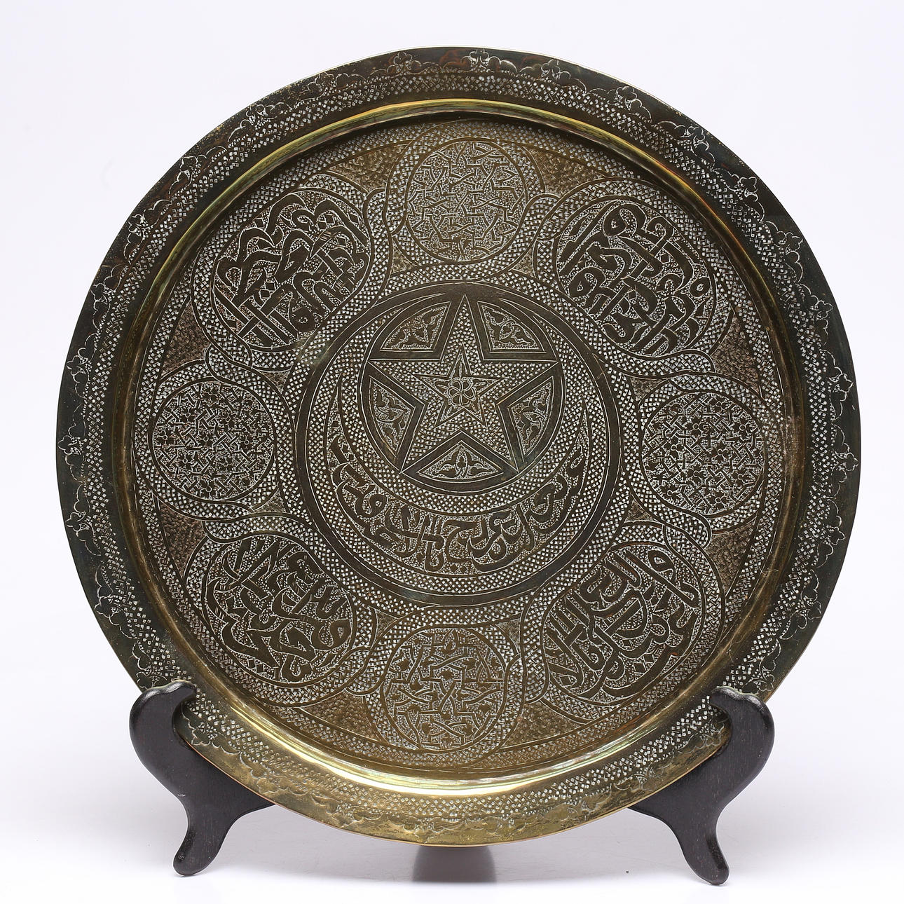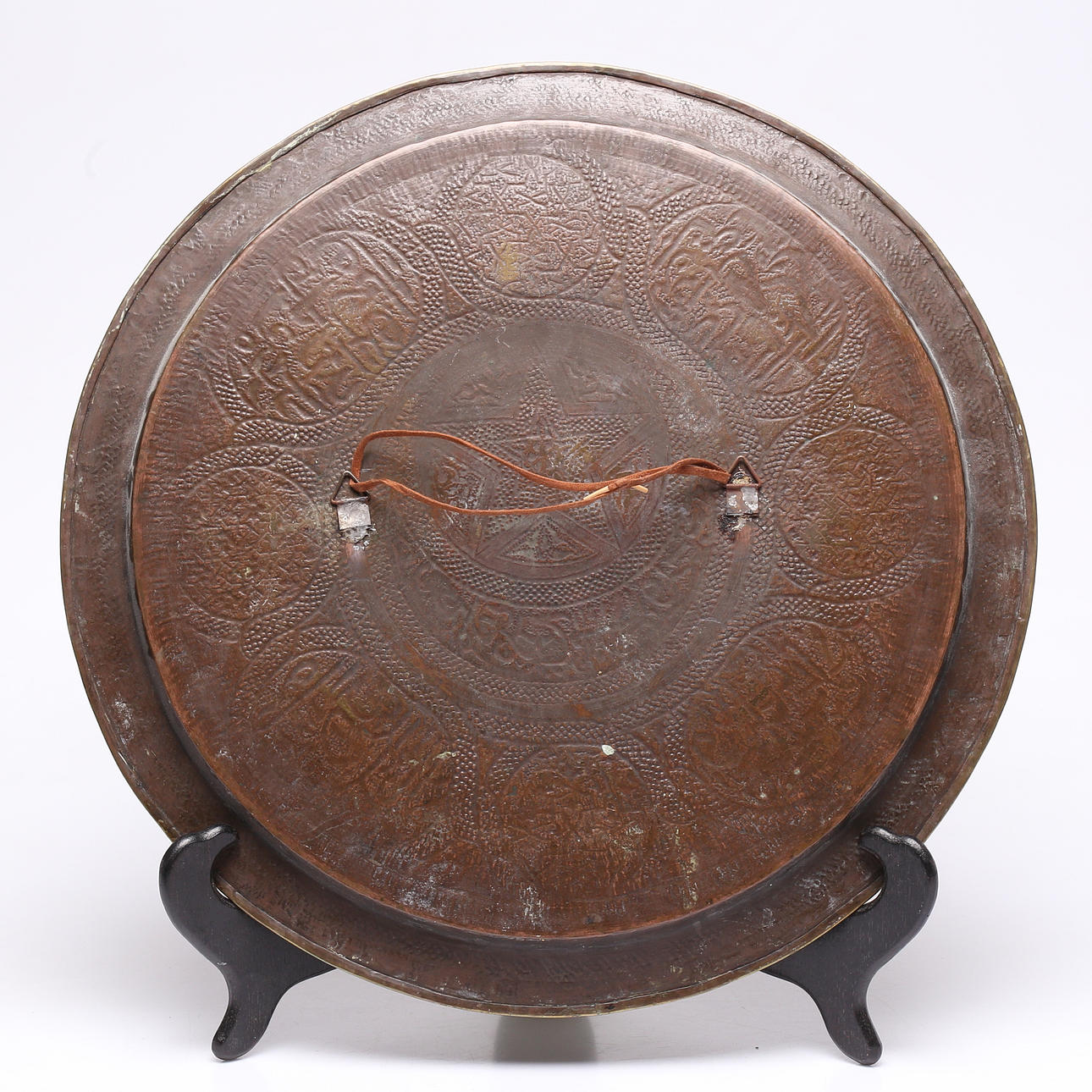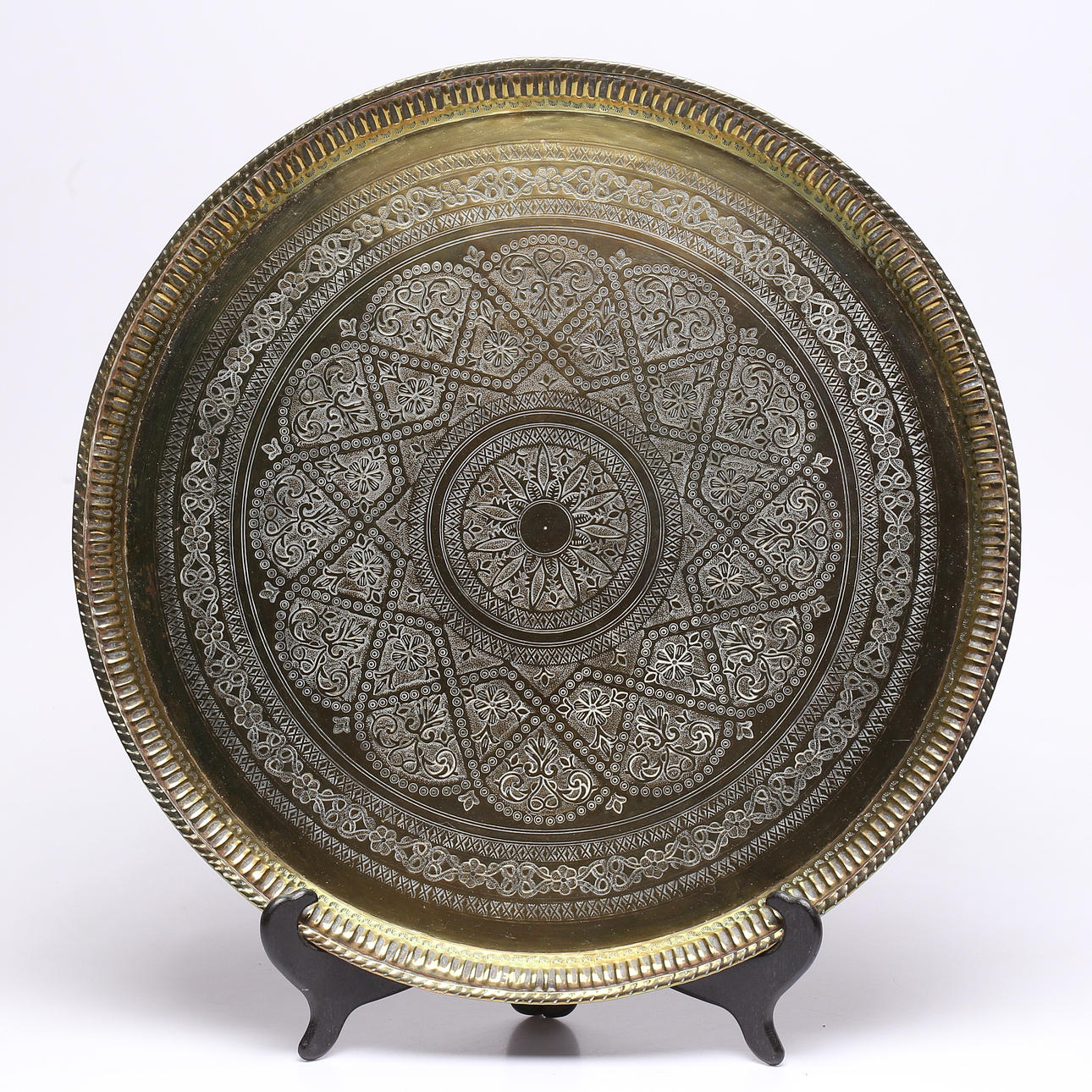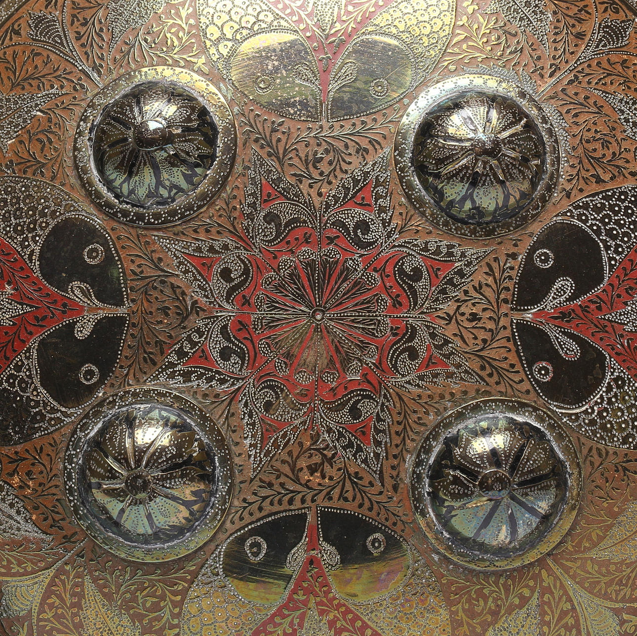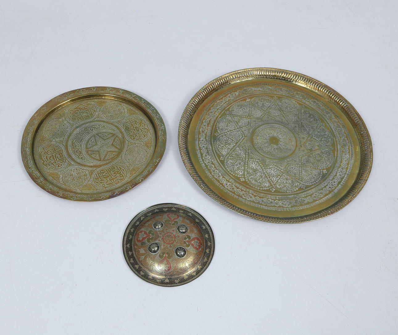Sköld diameter ca 23 m. Indo-Persian, troligen 1800-tal. 2 brickor. Diameter ca 41-55 cm.