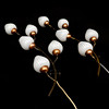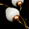 Stomme i mässing och koppar. 5 ljuspunkter vardera med kupor i glas. Höjd 85 cm.