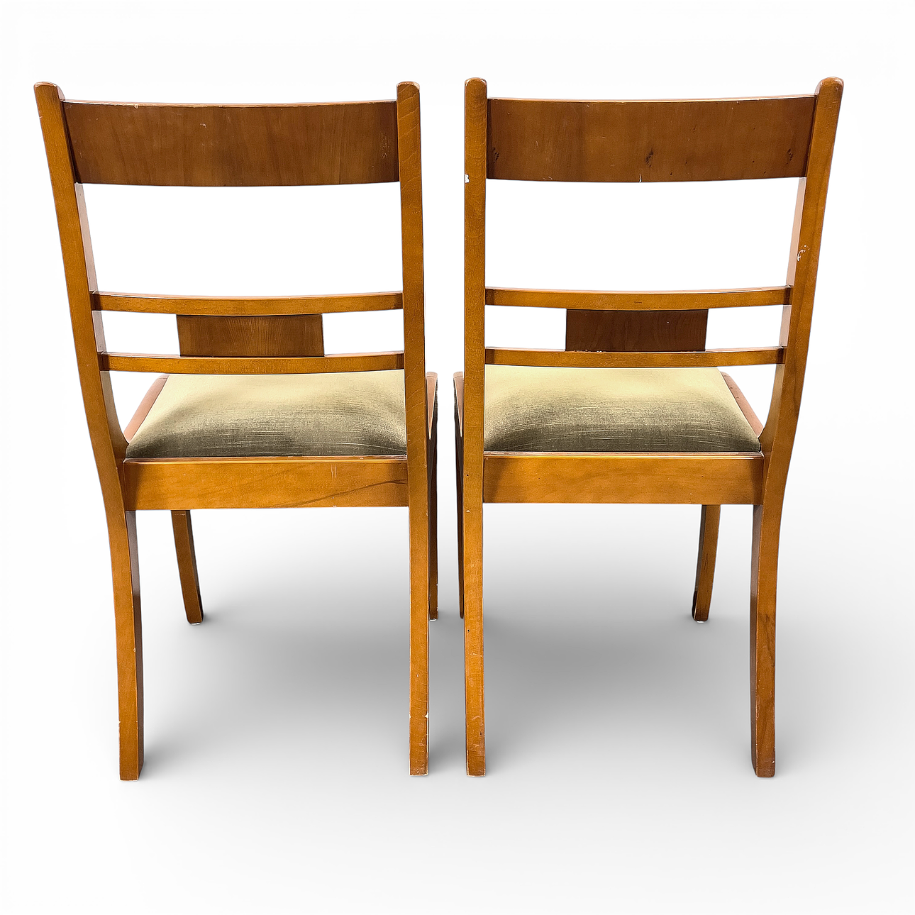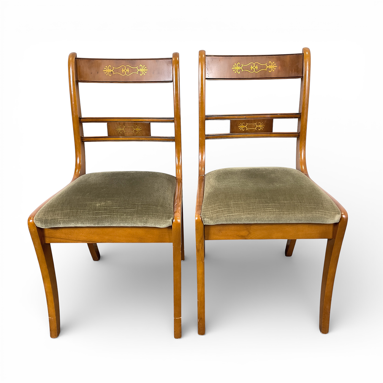 Stomme i trä med fast stoppad sits klädd i grön textil. Ryggbricka med bronserad dekor.