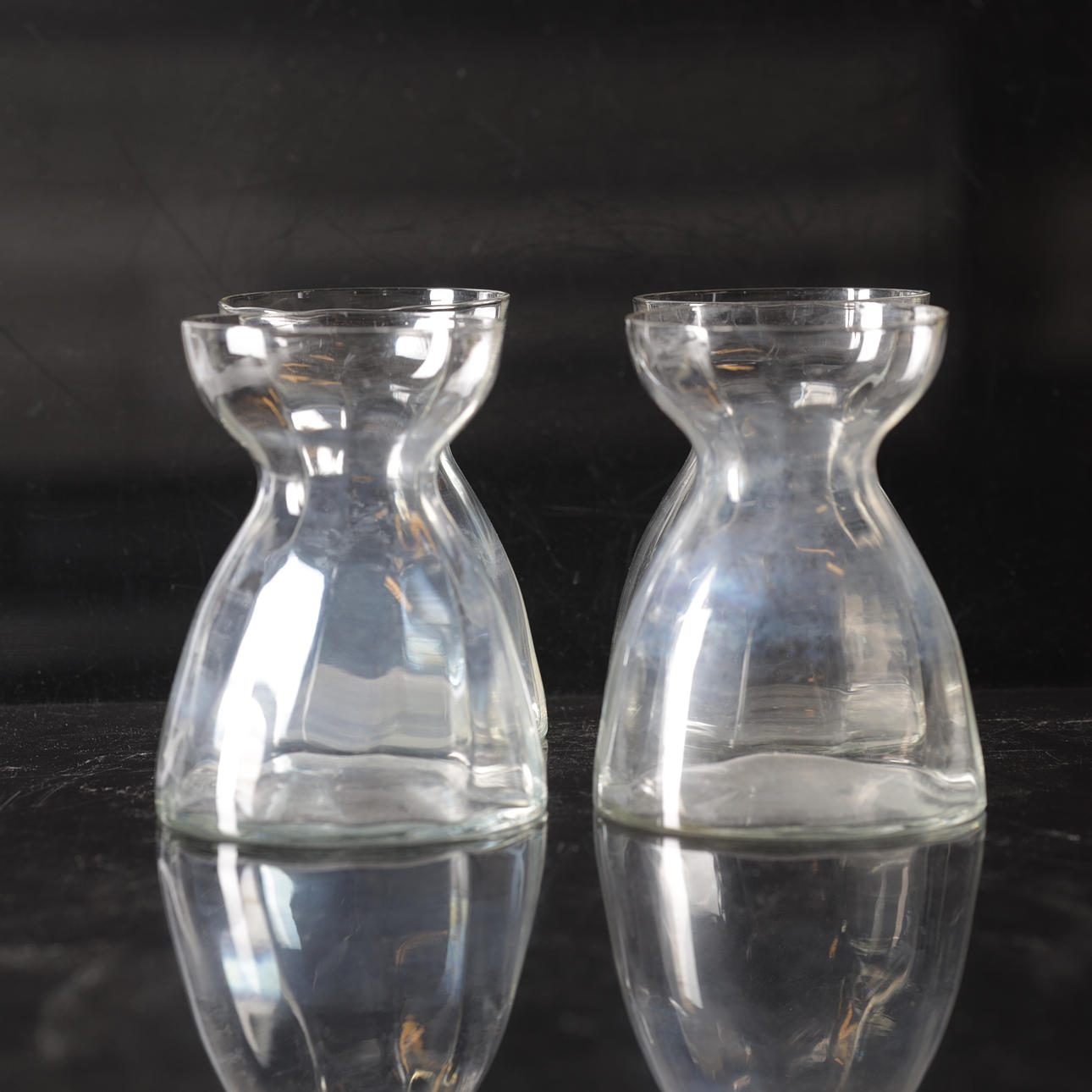 Vaser med övre diameter 8,5, höjd 13 cm.