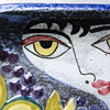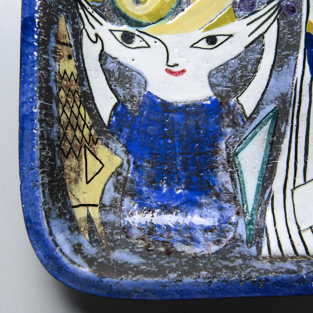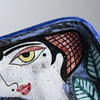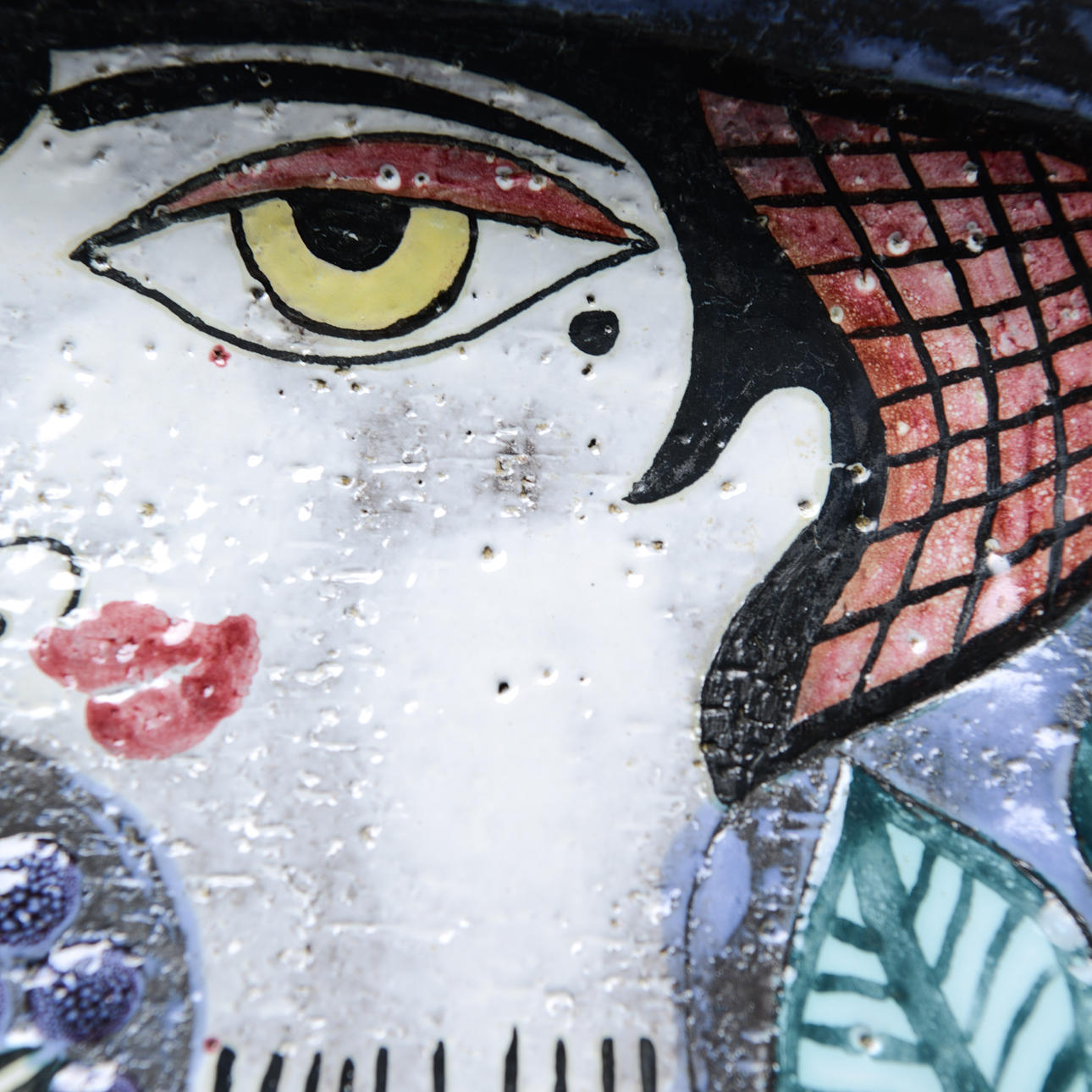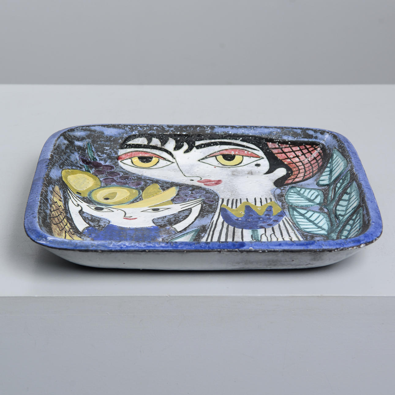 Chamotterat lergods med målat motiv av kvinna och barn (Dekor A). 32 x 32 cm.