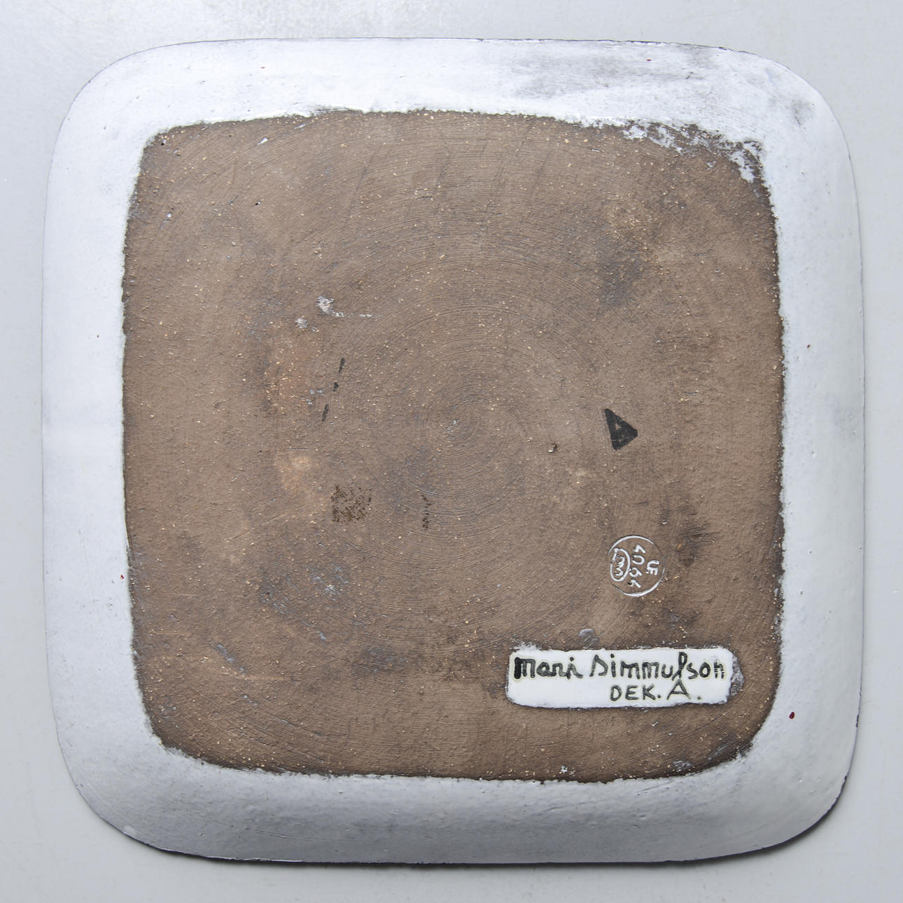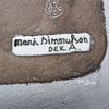 Bakgrund: Mari Simmulson (1911-2000) var den mest allsidiga av Upsala-Ekebys alla formgivare. Hon var konstnär ut i fingerspetsarna, målade på duk och keramik, gjorde offentliga utsmyckningar, designade textilmönster, ritade skämtteckningar för Upsala Nya Tidning och formgav över 200 konstgodsserier i keramik, under sina 22 år på fabriken.