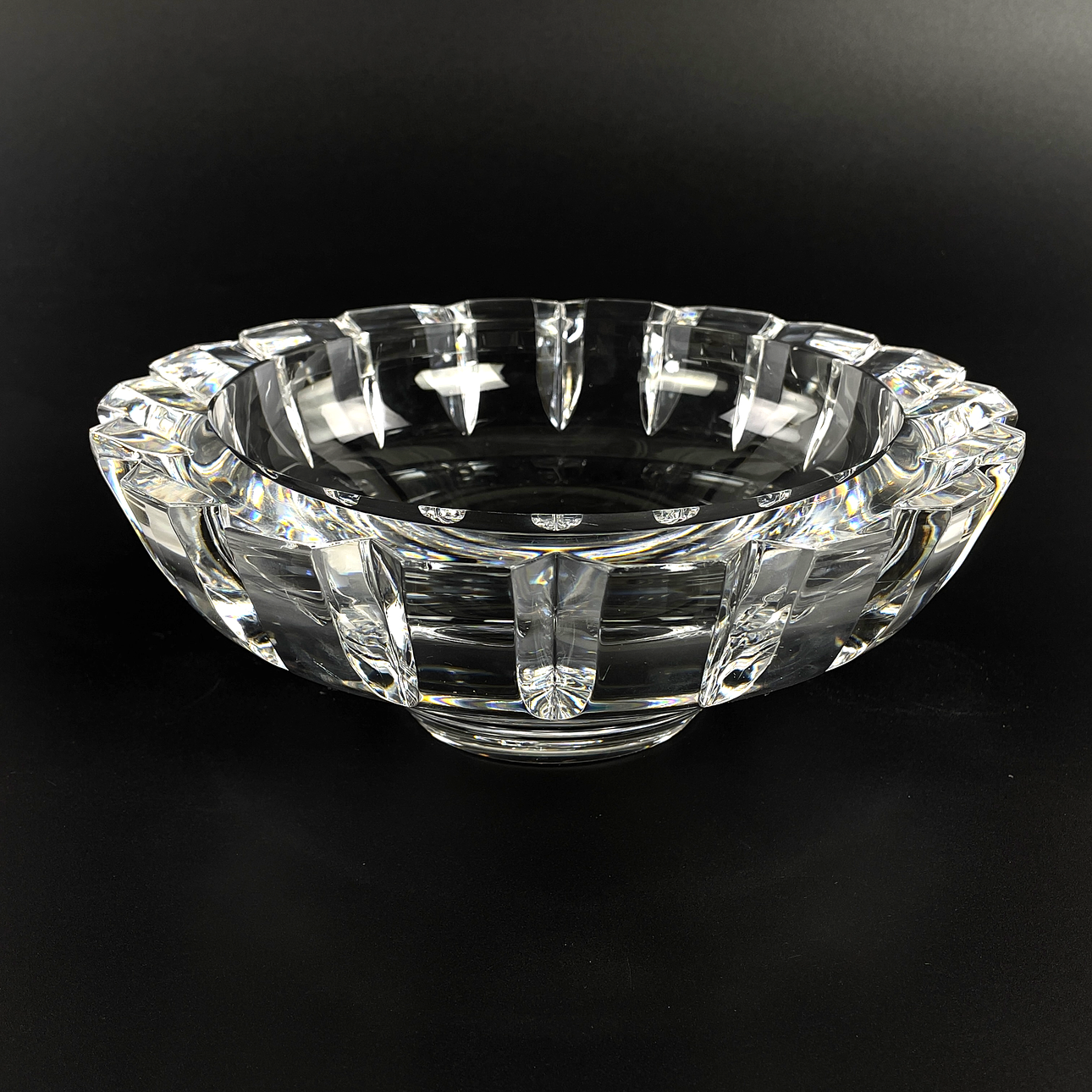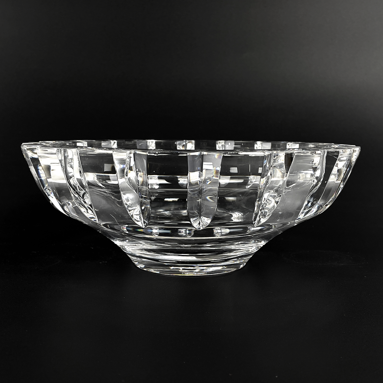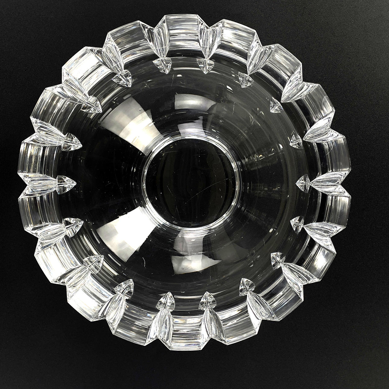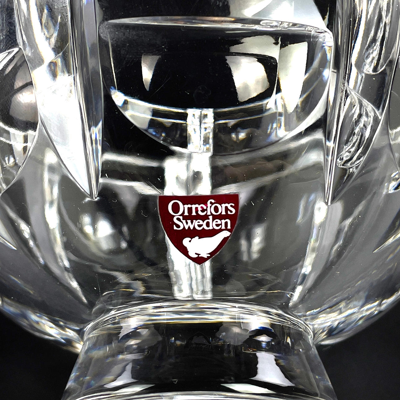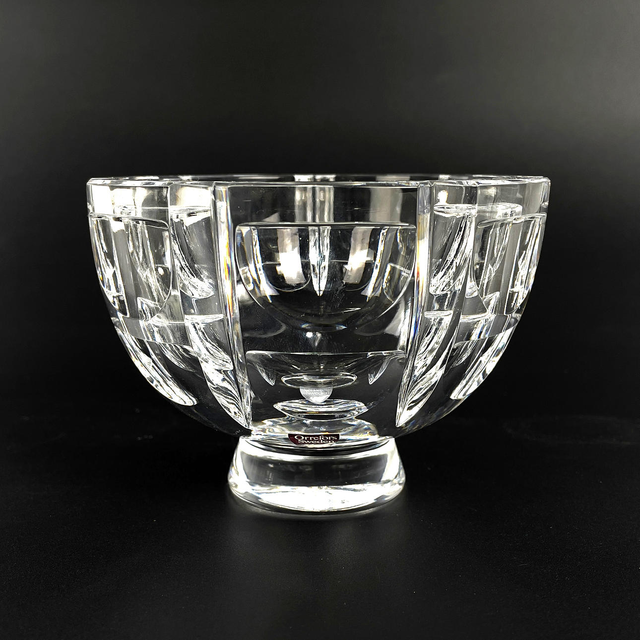 1 st rund skål på fot, kristall, "Tusen fönster", design Simon Gate, signerad samt etikettmärkt Orrefors, höjd ca 9 cm, Ø ca 12 cm.