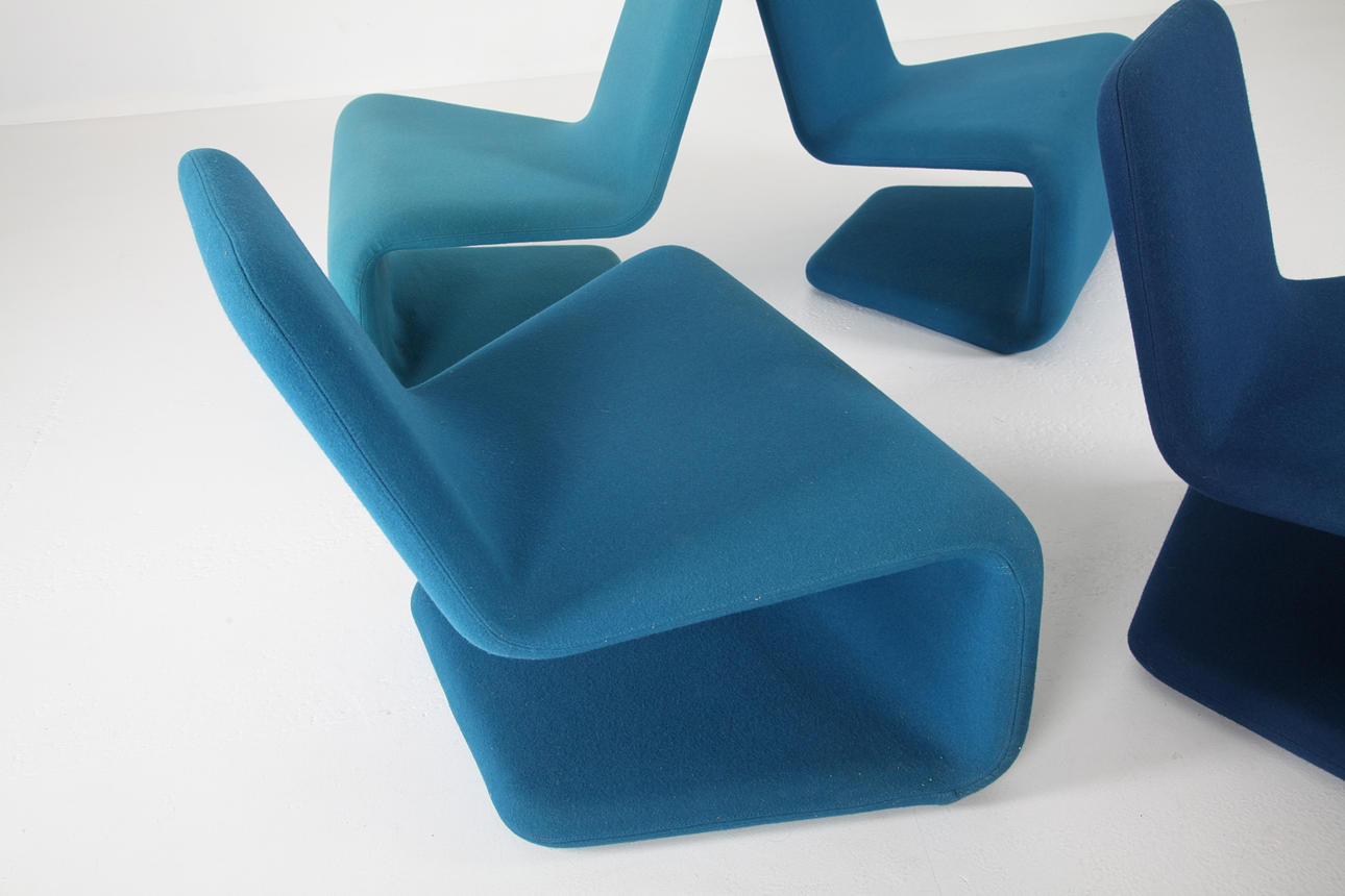 4 st loungestolar "Urban Lounge", helklädda i filttextil i olika bå/turkos nyanser. Dragkedja undertill.