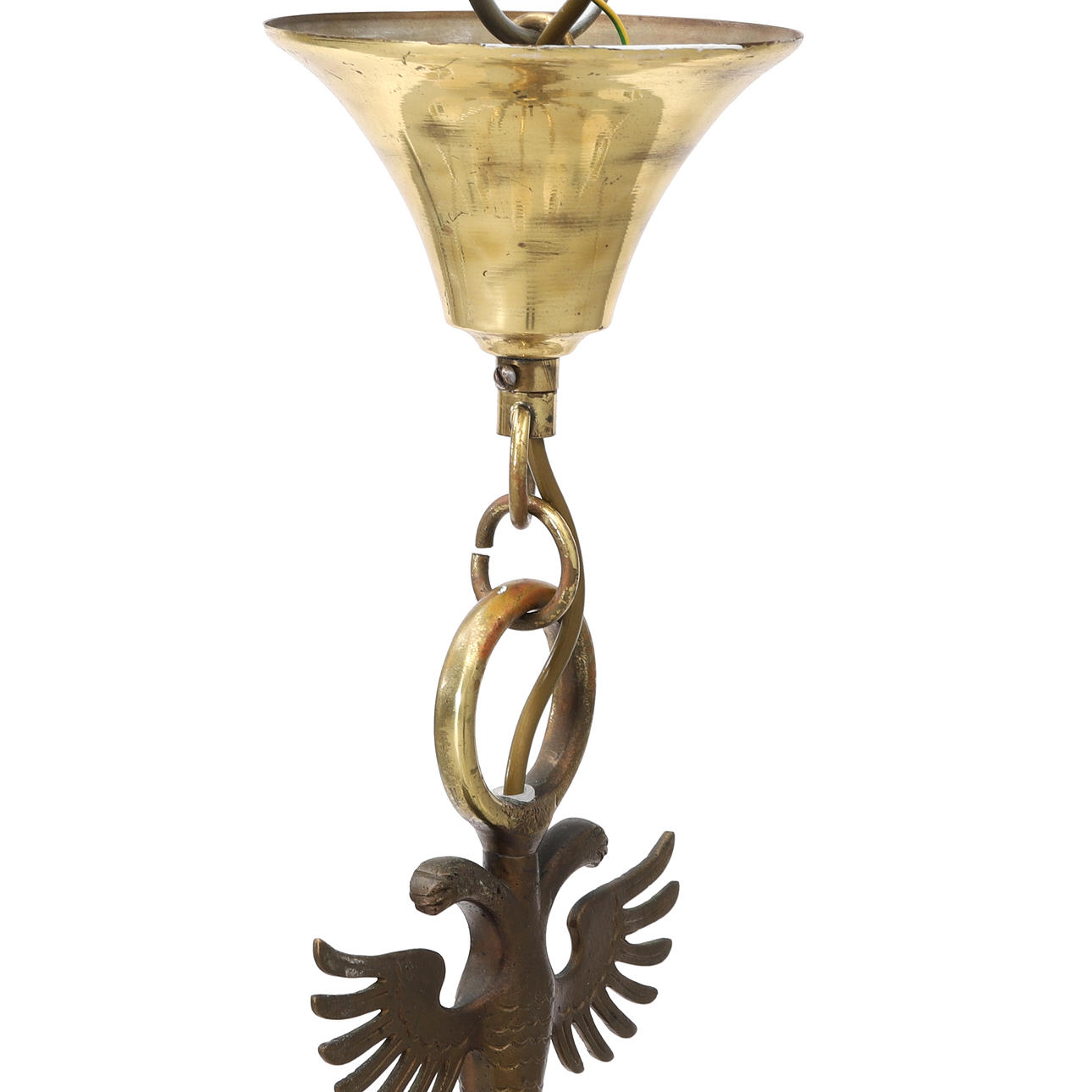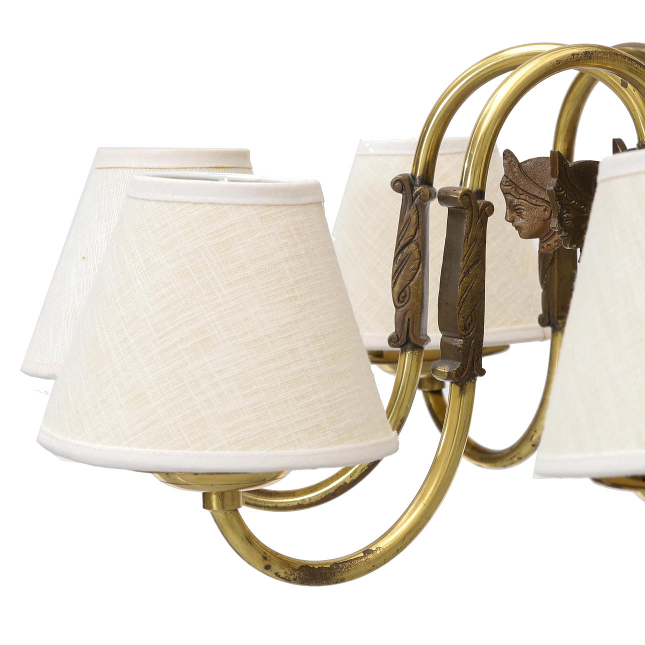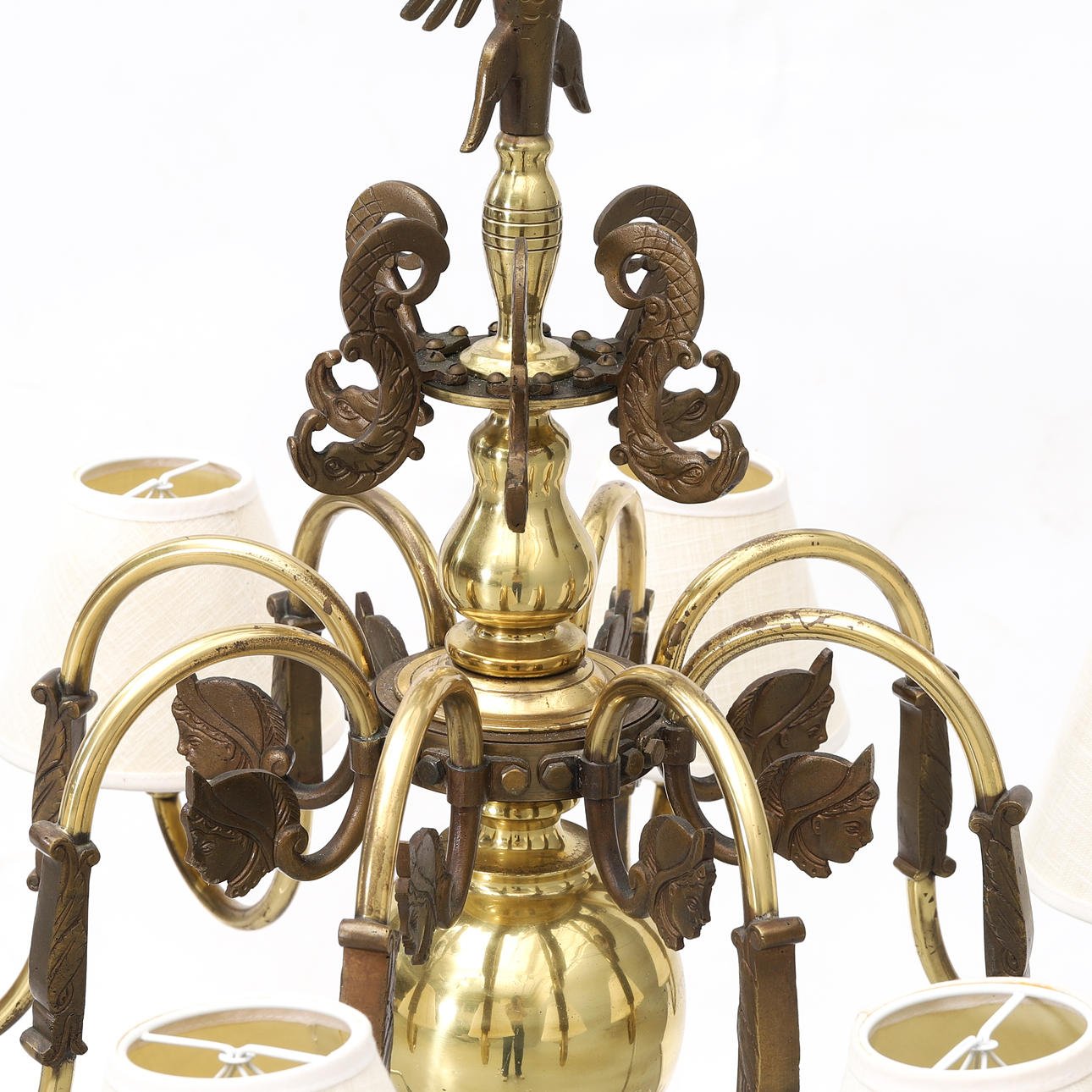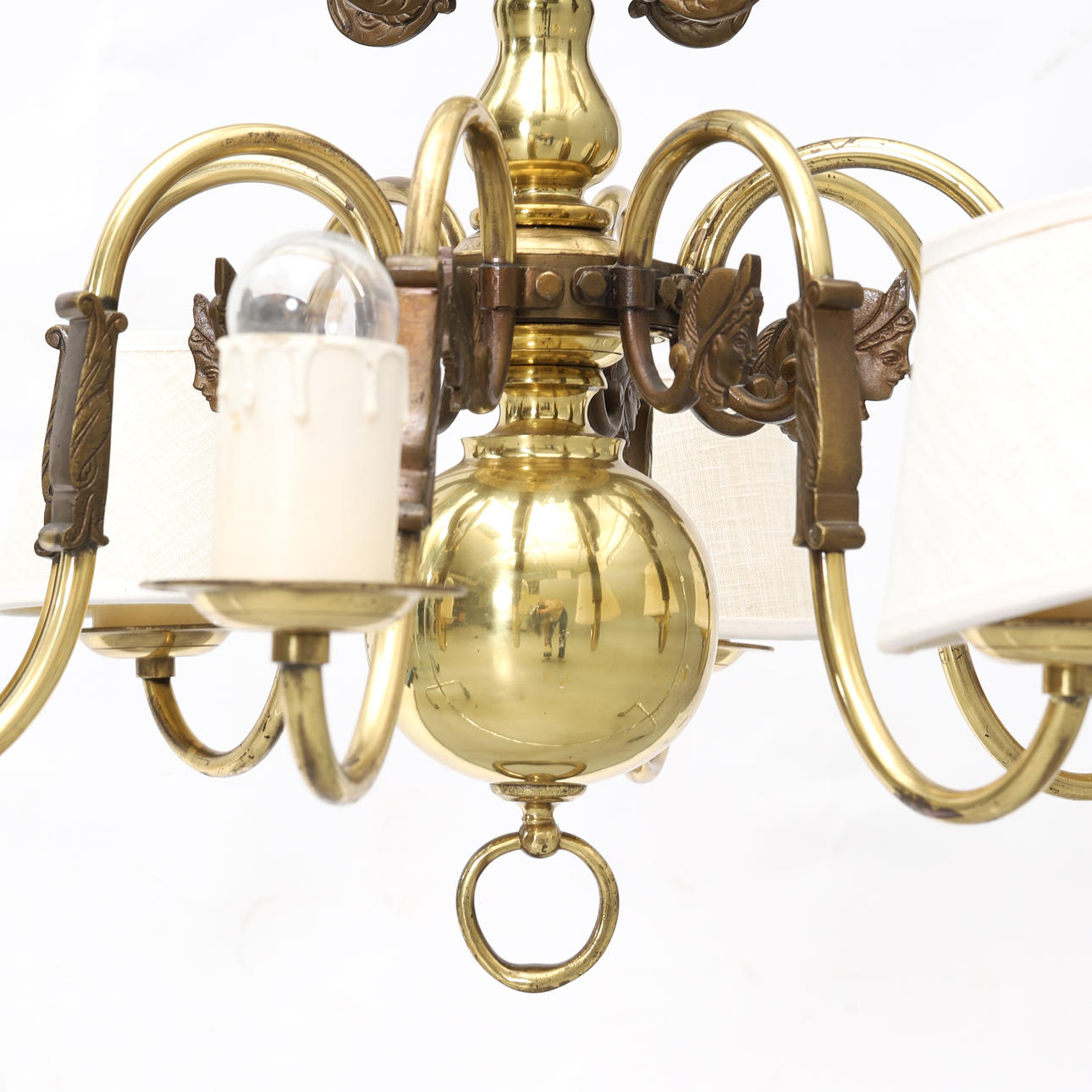 Stomme i mässing med åtta ljusarmar. Höjd 63 cm. Diameter ca 70 cm.