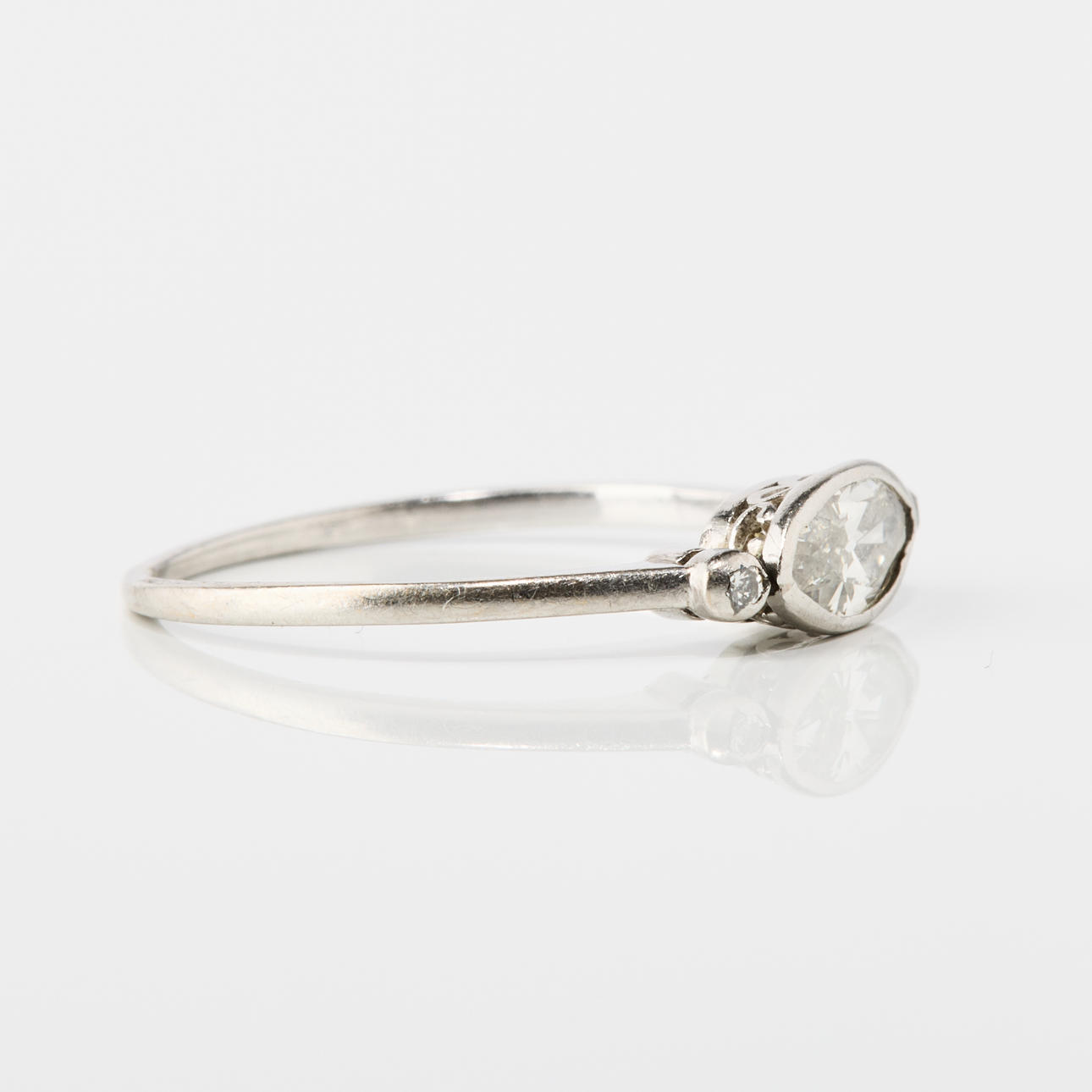 Infattad med en navett- och gammalslipade diamanter, totalt ca 0,35 ctv. Stl ca 15,75 mm. Vikt ca 1,5 gram.