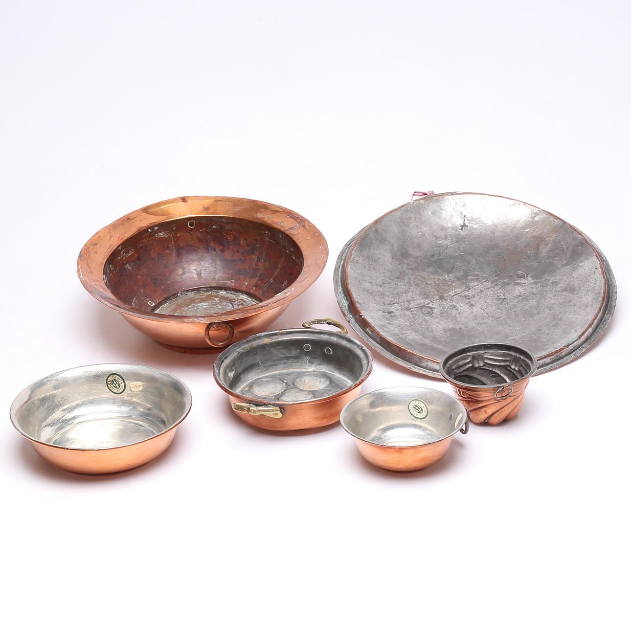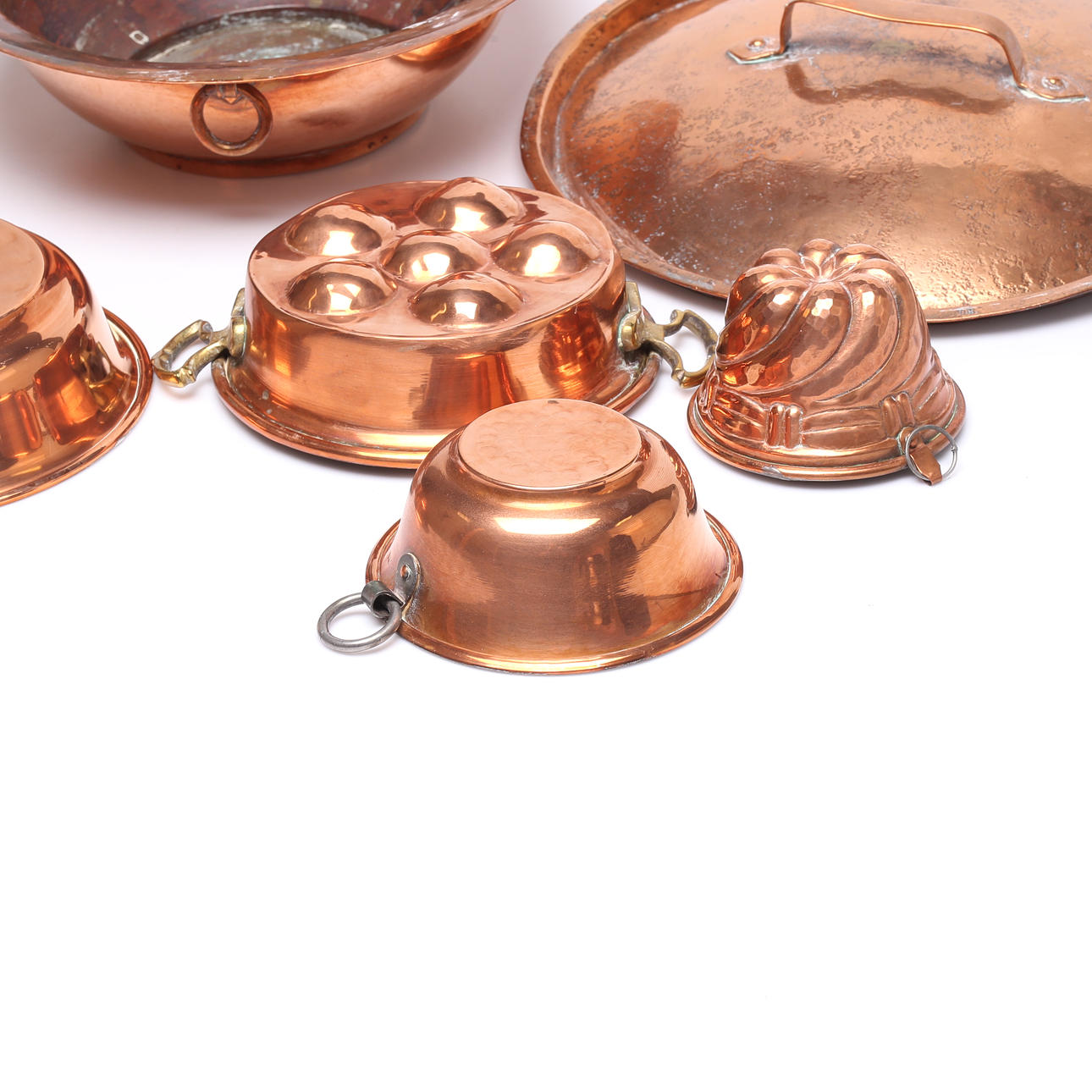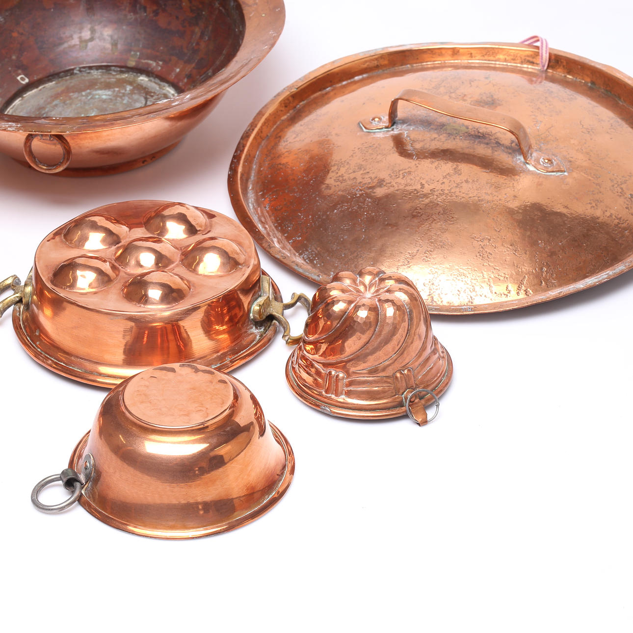 FORMER, 5 st samt LOCK, koppar, 1800-1900 tal.