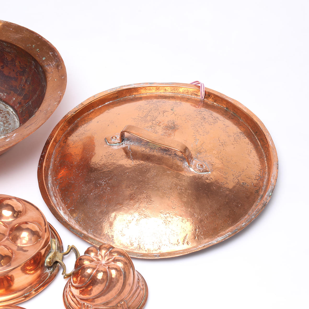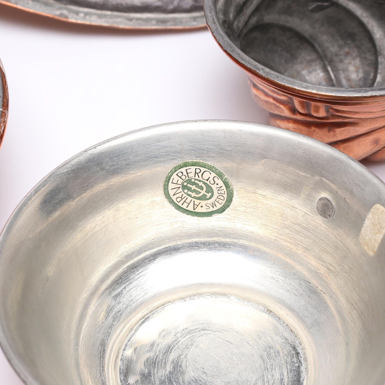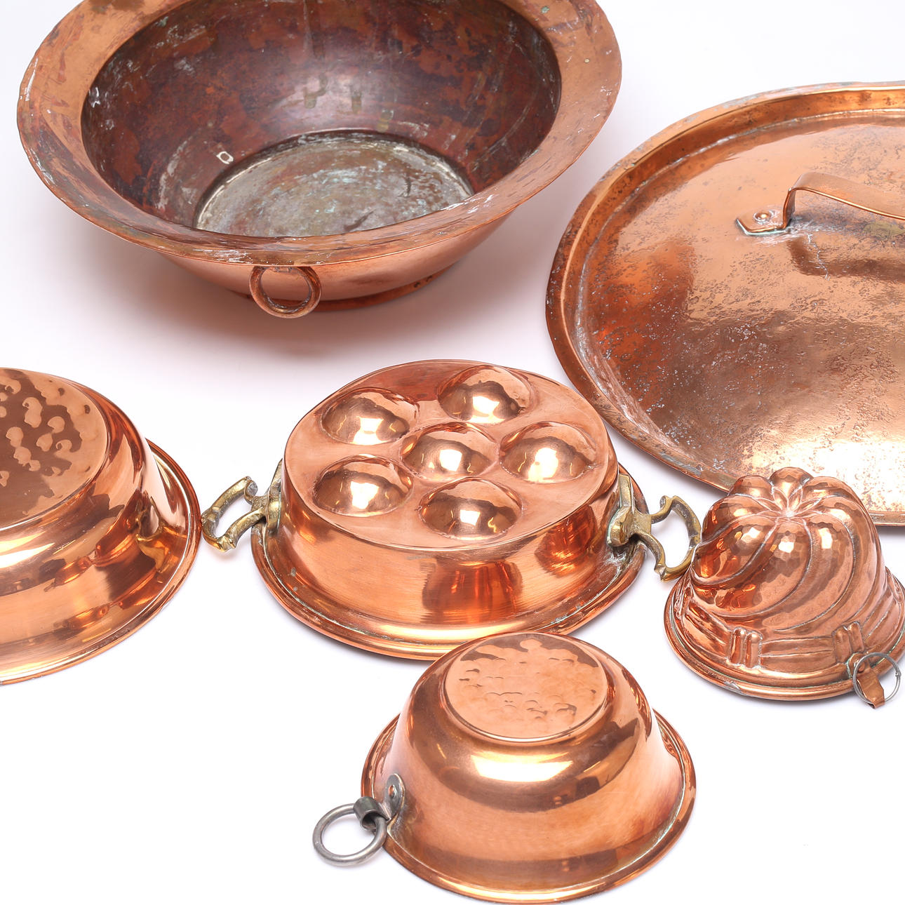 FORMER, 5 st samt LOCK, koppar, 1800-1900 tal.