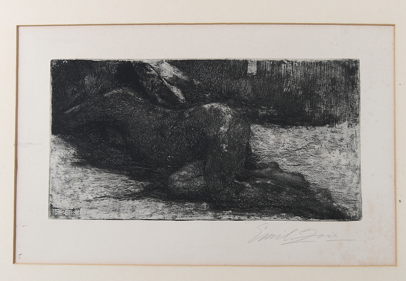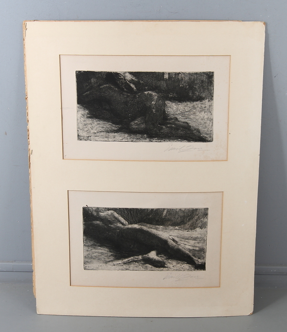 488982. EMILE ZOIR. 2 st nakenstudier, etsningar, singerade.
