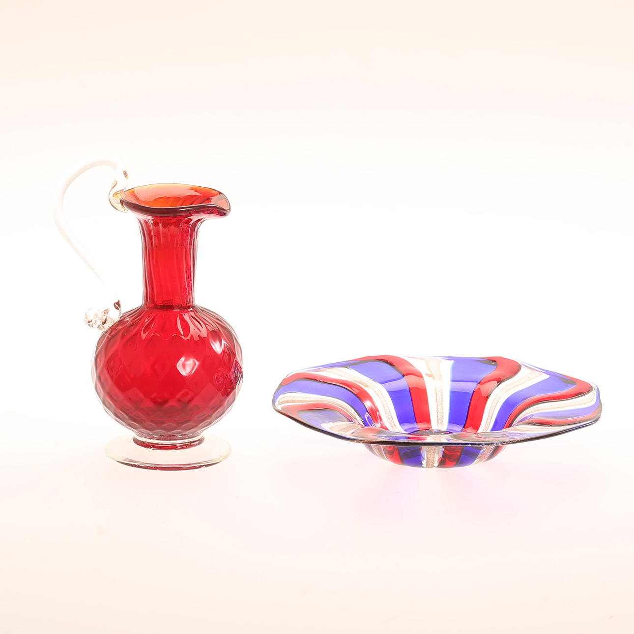 MURANO, glasföremål, 2 delar, 1900-tal.
