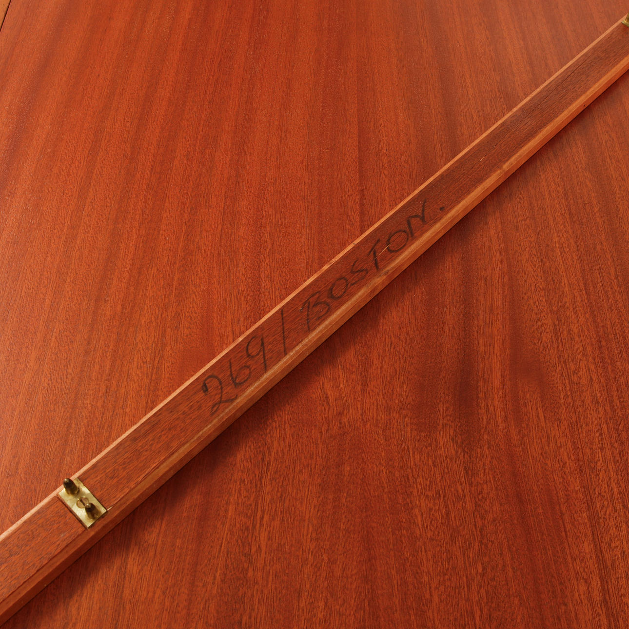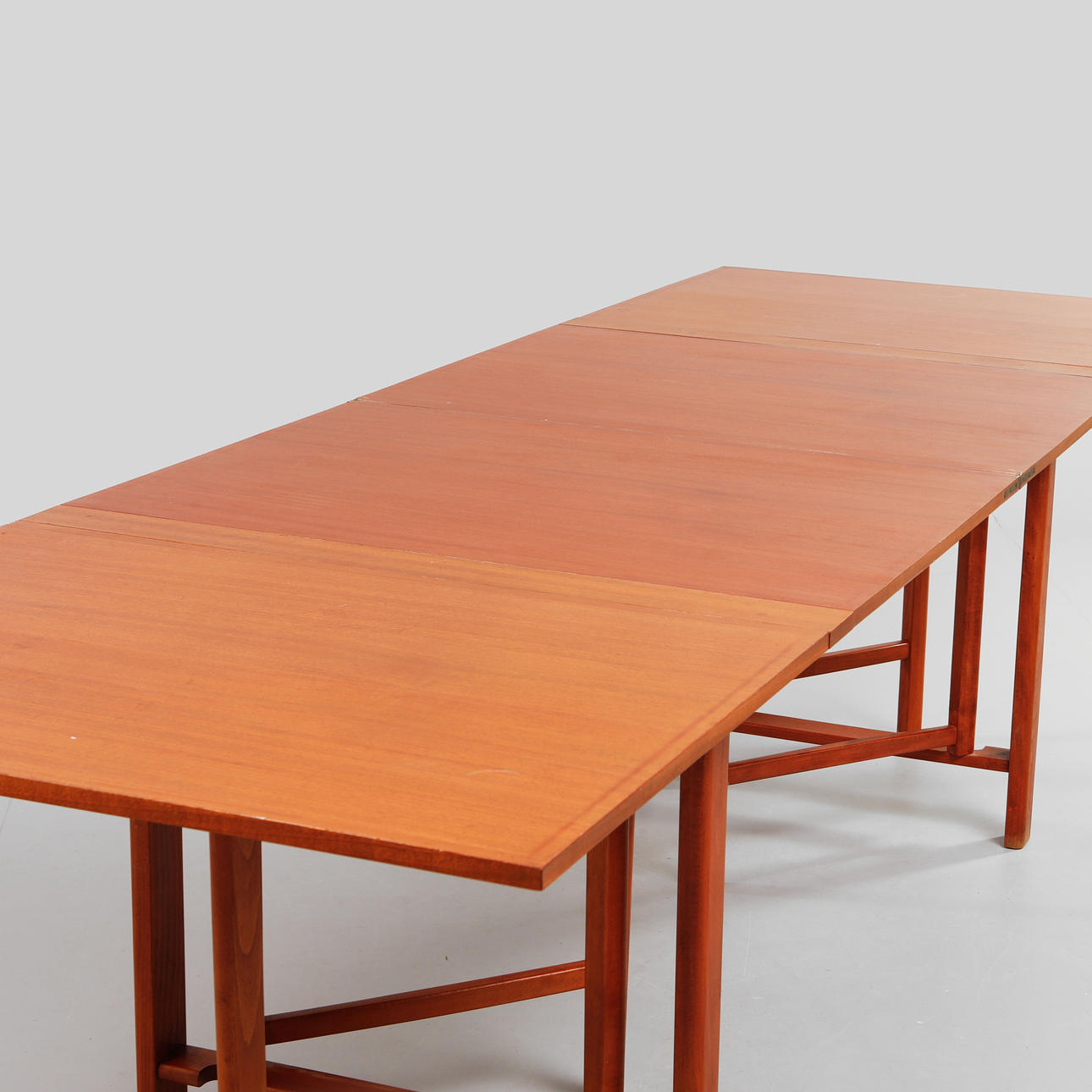 Mahogny faner och bok, utfälld längd ca 278,5 cm, bredd ca 89,5 cm, Höjd ca 73,5 cm. Ihopfälld 89,5 x 23 cm.