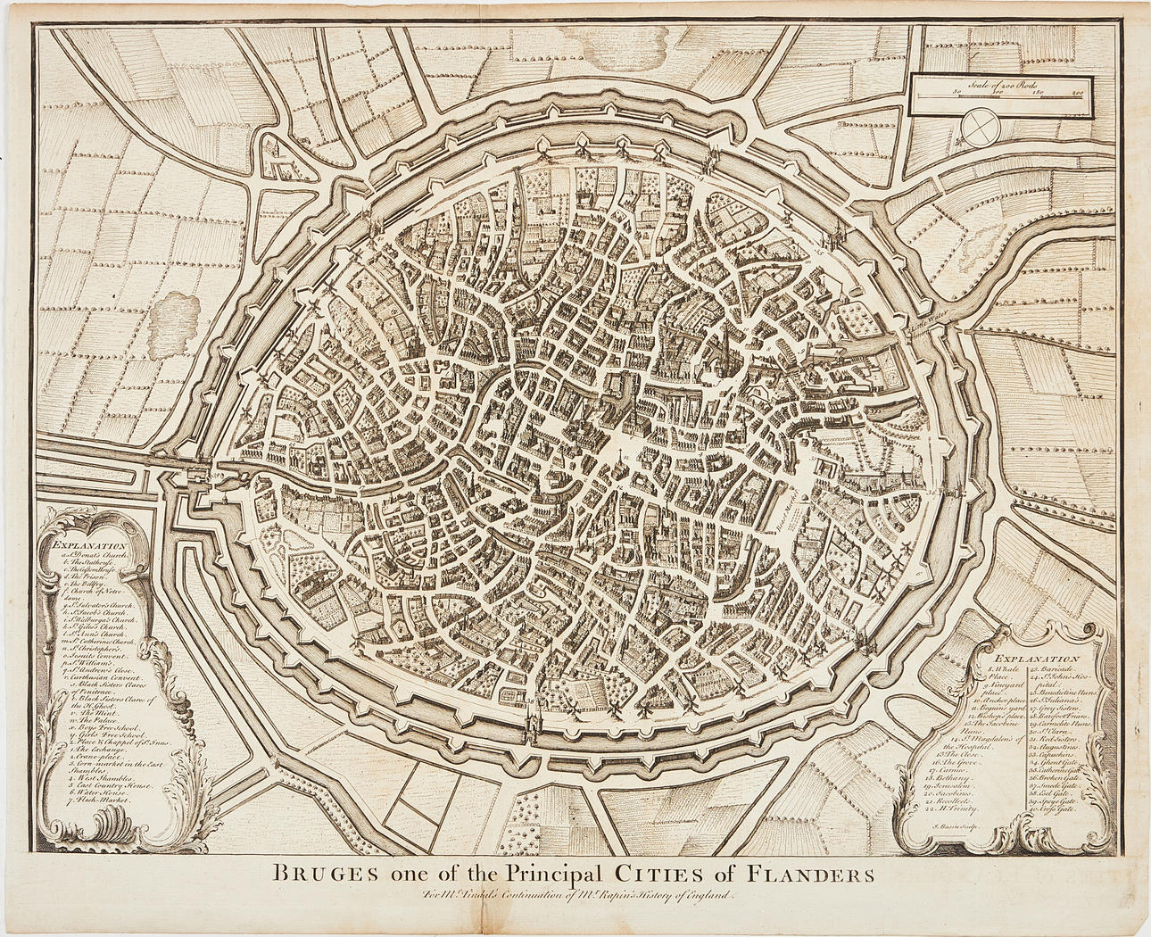 BASIRE, JAMES (gravör). Bruge one of the Principal For mr Tindal´s Continuation of mr Rapin´s History of England, ca 1750.