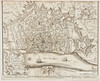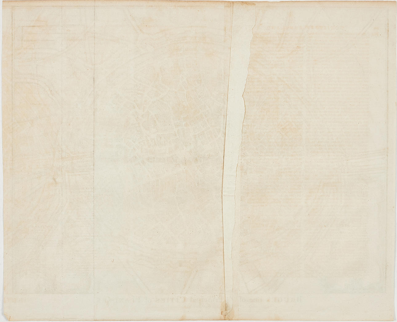 400 x 490 mm. Graverad stadsplan över Brygge,. Två veck från den ursprungliga inbindningen.
