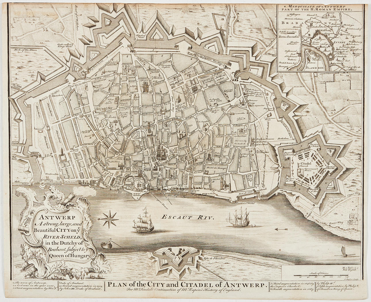 BASIRE, JAMES (gravör). Plan of the City and Citadel of Antwerp, For mr Tindal´s Continuation of mr Rapin´s History of England, ca 1750.