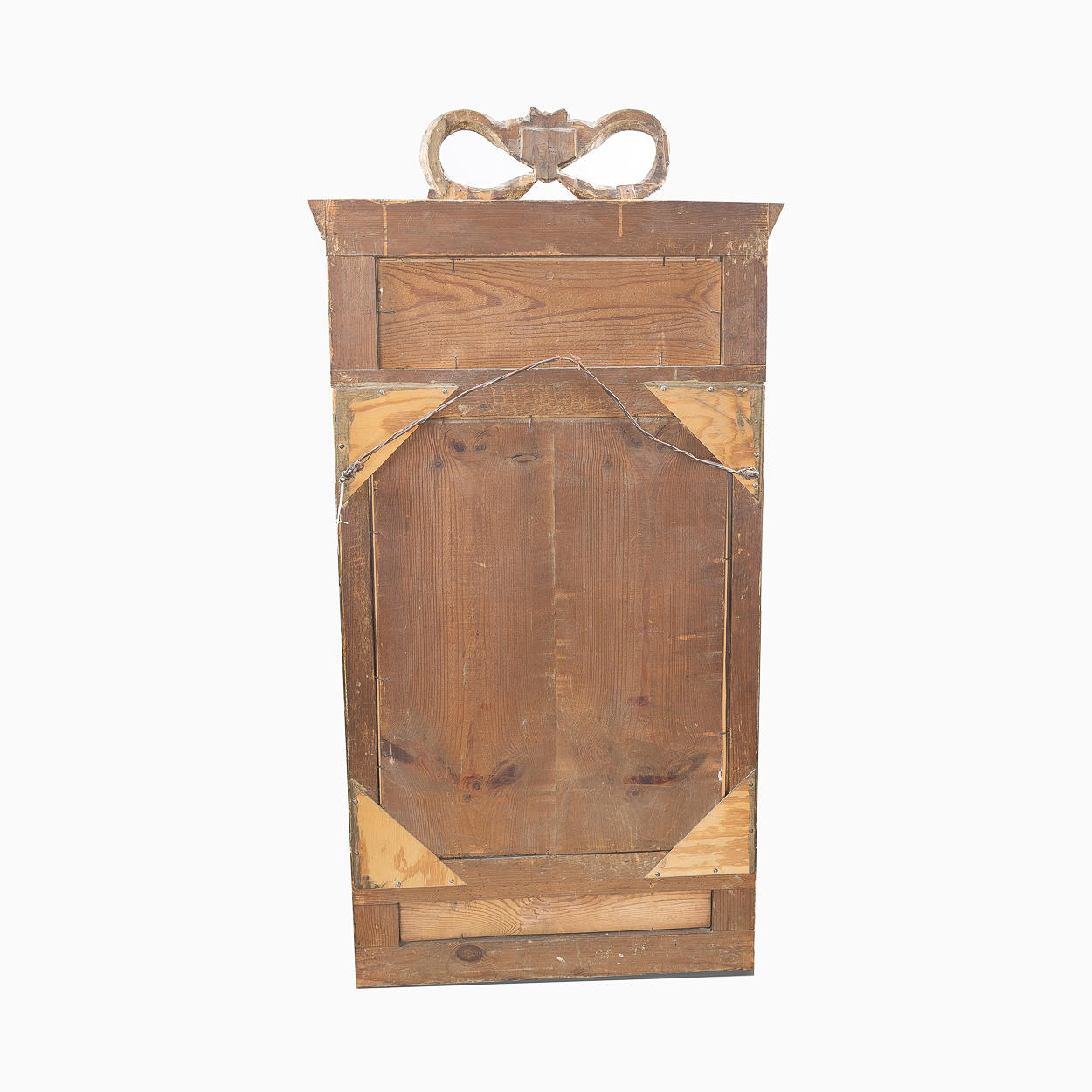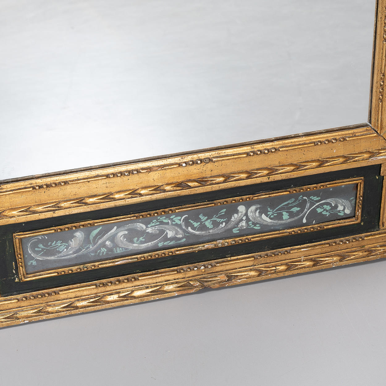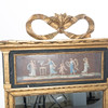 Förgylld, bronserad och bemålad, överstycke med skuren rosett. Gouacher med antika figurer.