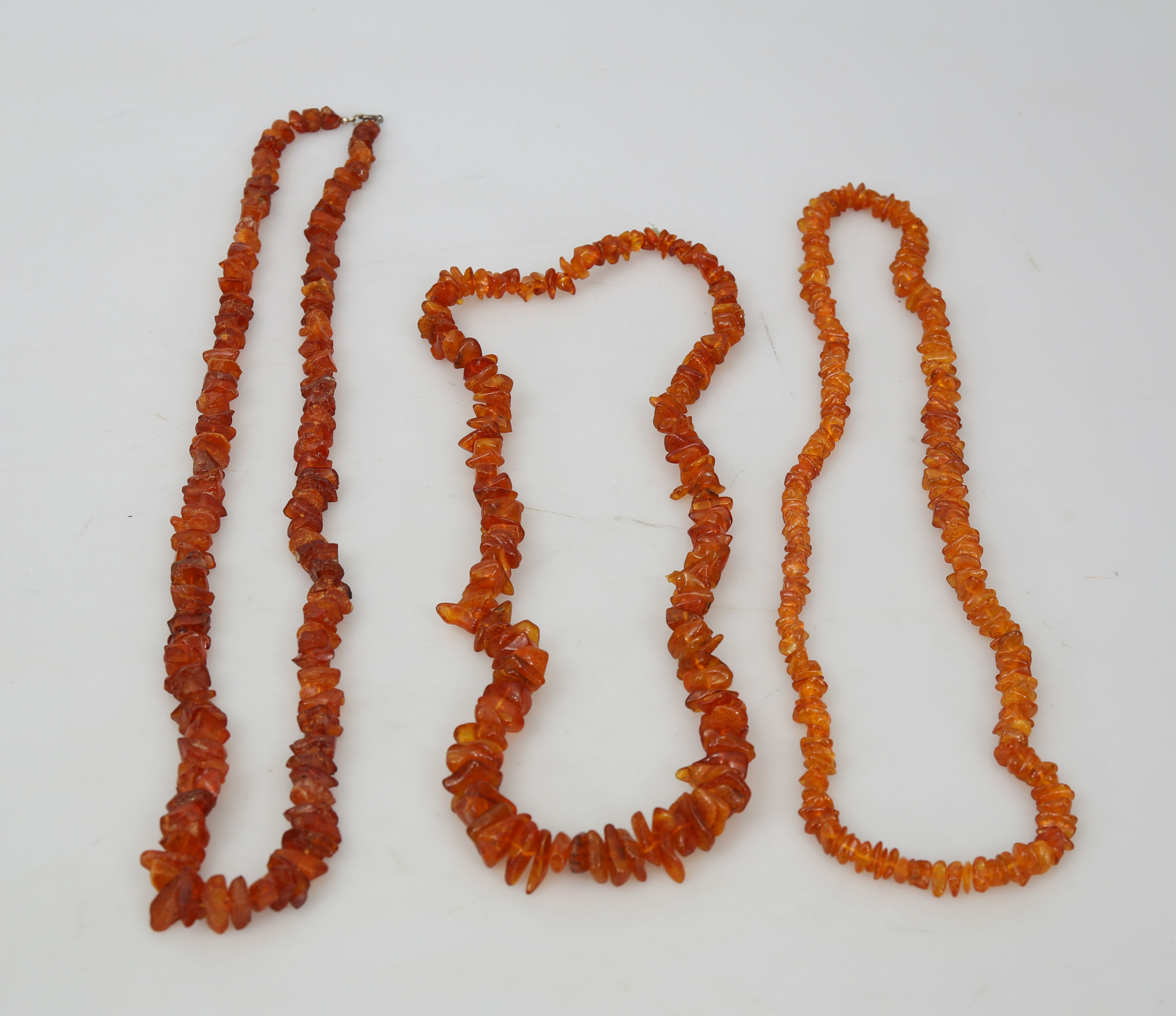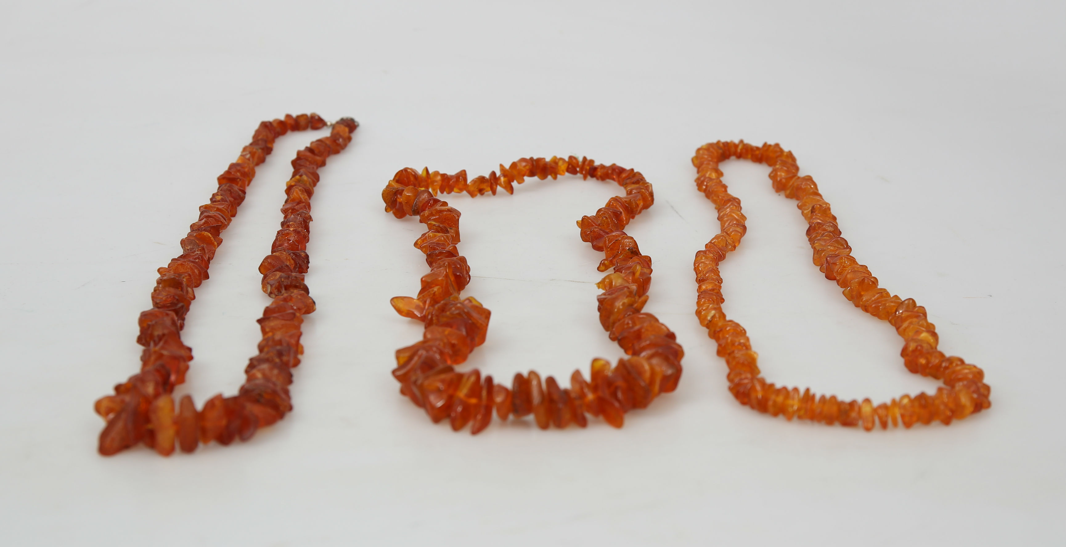 489736. COLLIER, bärnsten, 3 stycken, 1900-talets andra hälft.