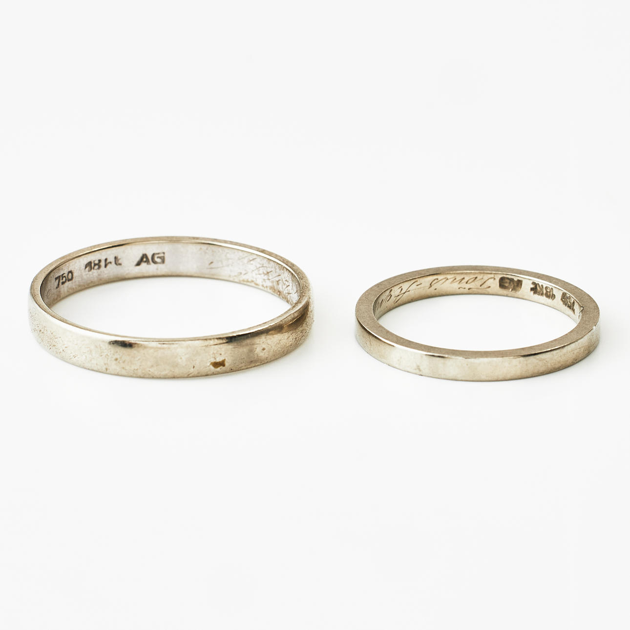 VIGSELRINGAR, 2 st., 18 k rodierat vitguld.