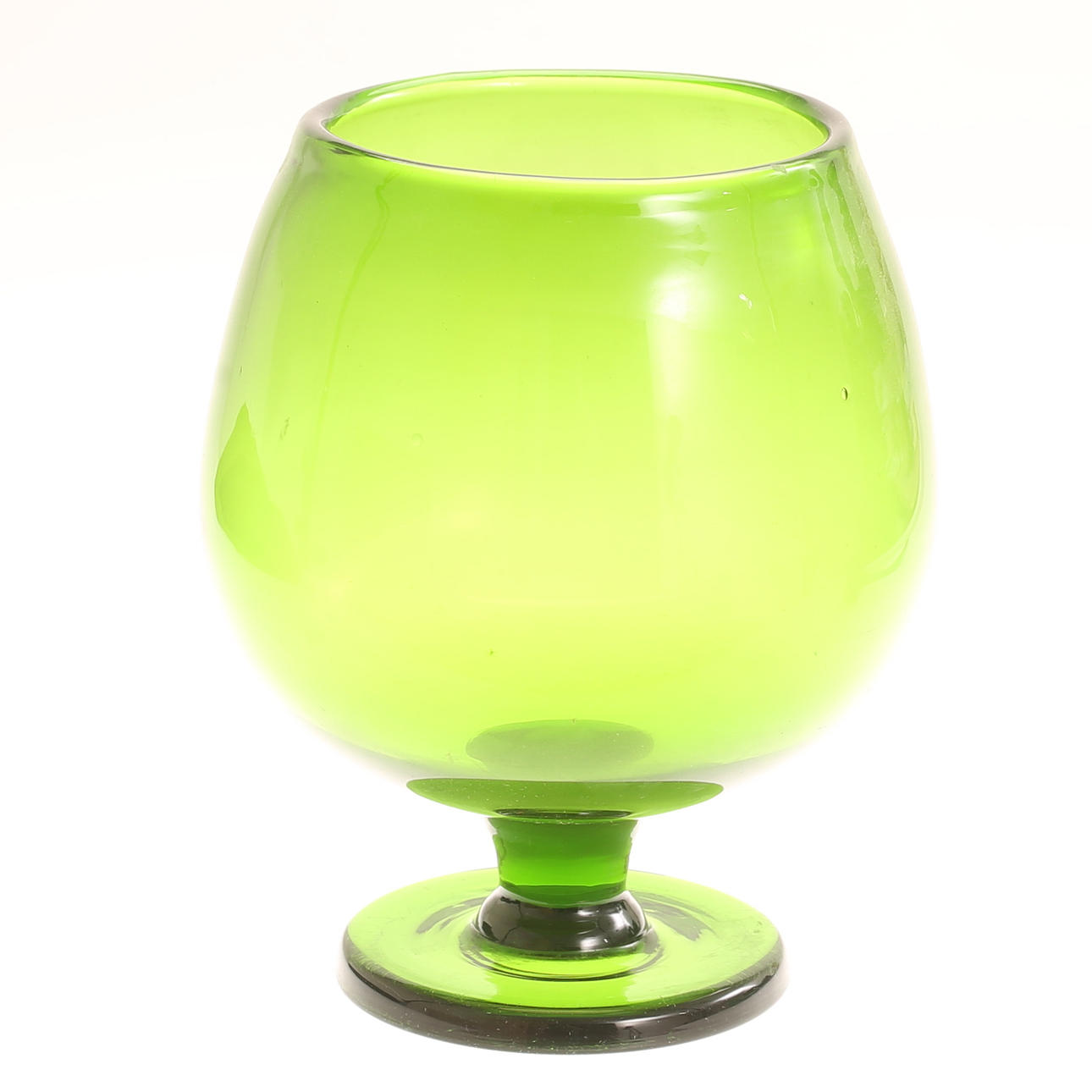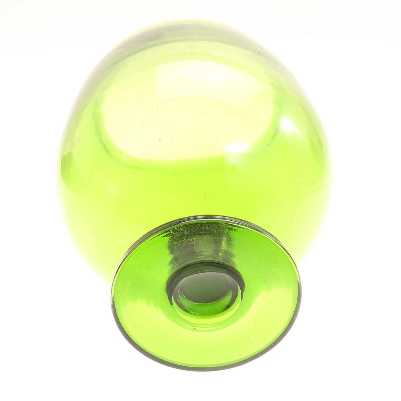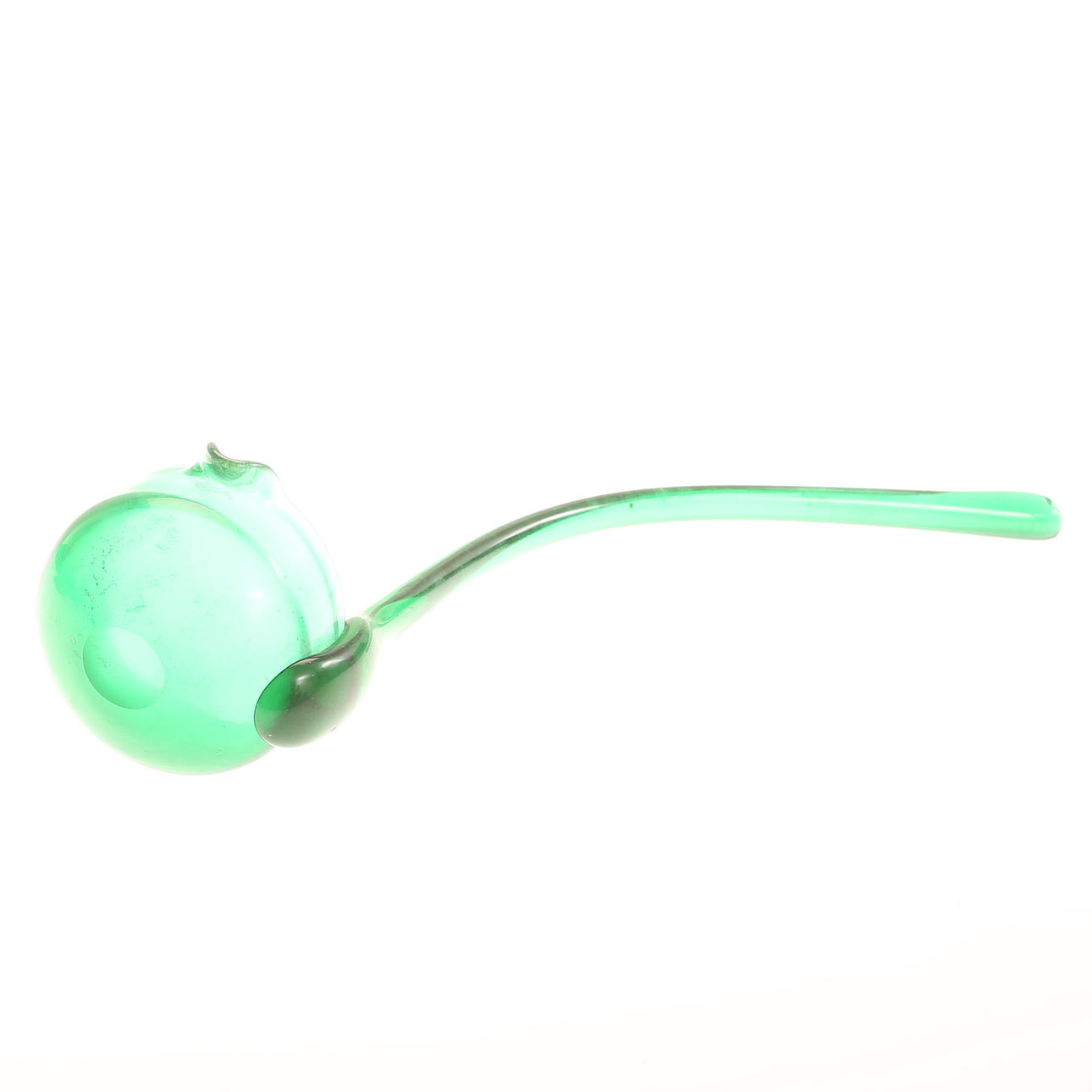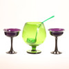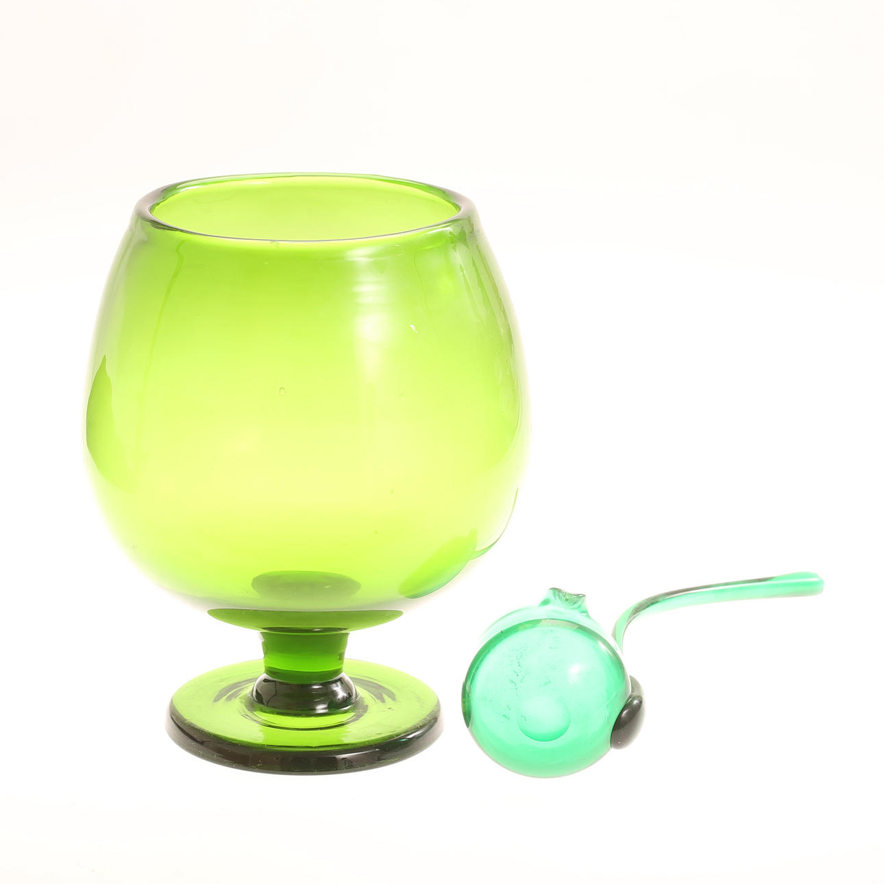 Bålskål med slev, grönt glas, höjd ca 26 cm.
