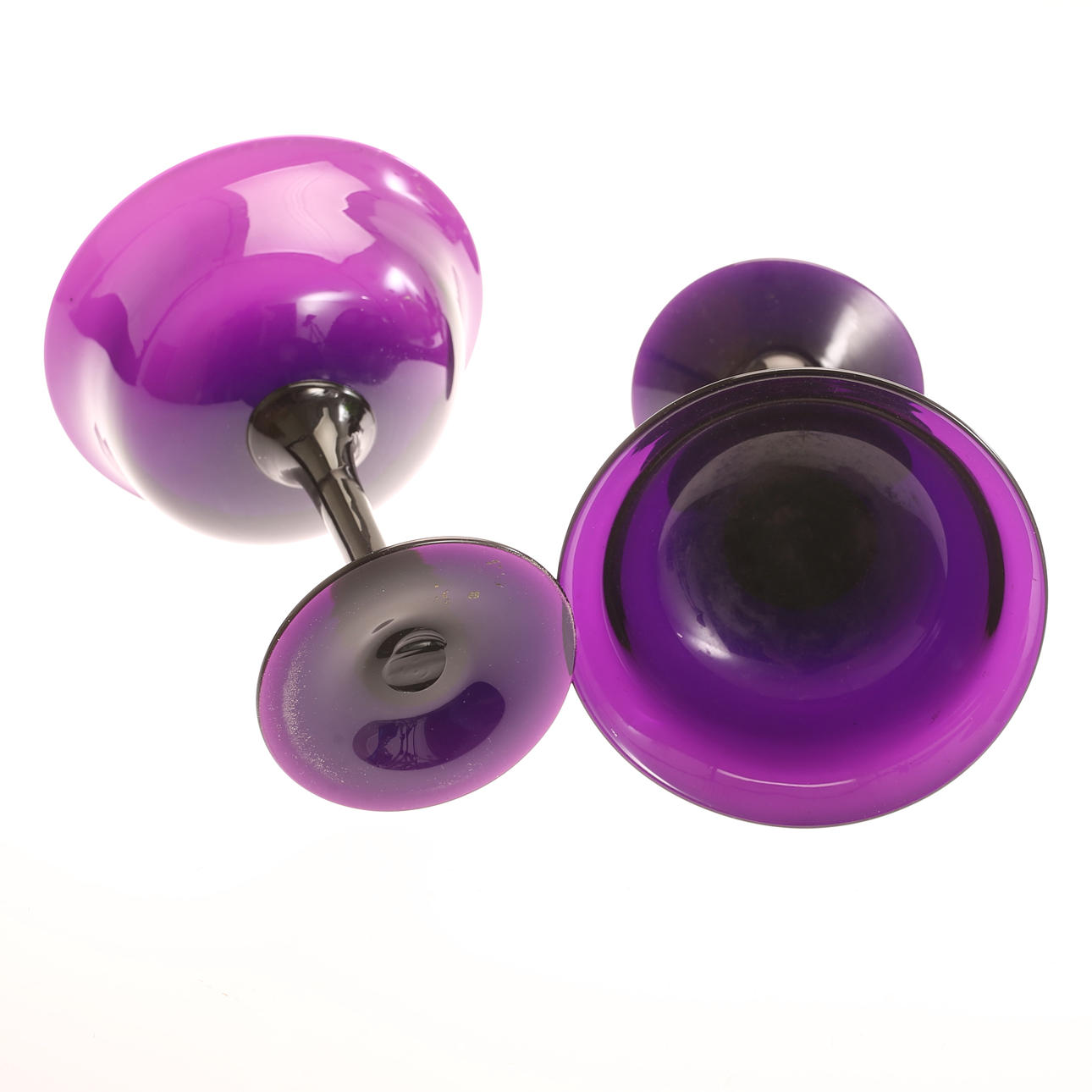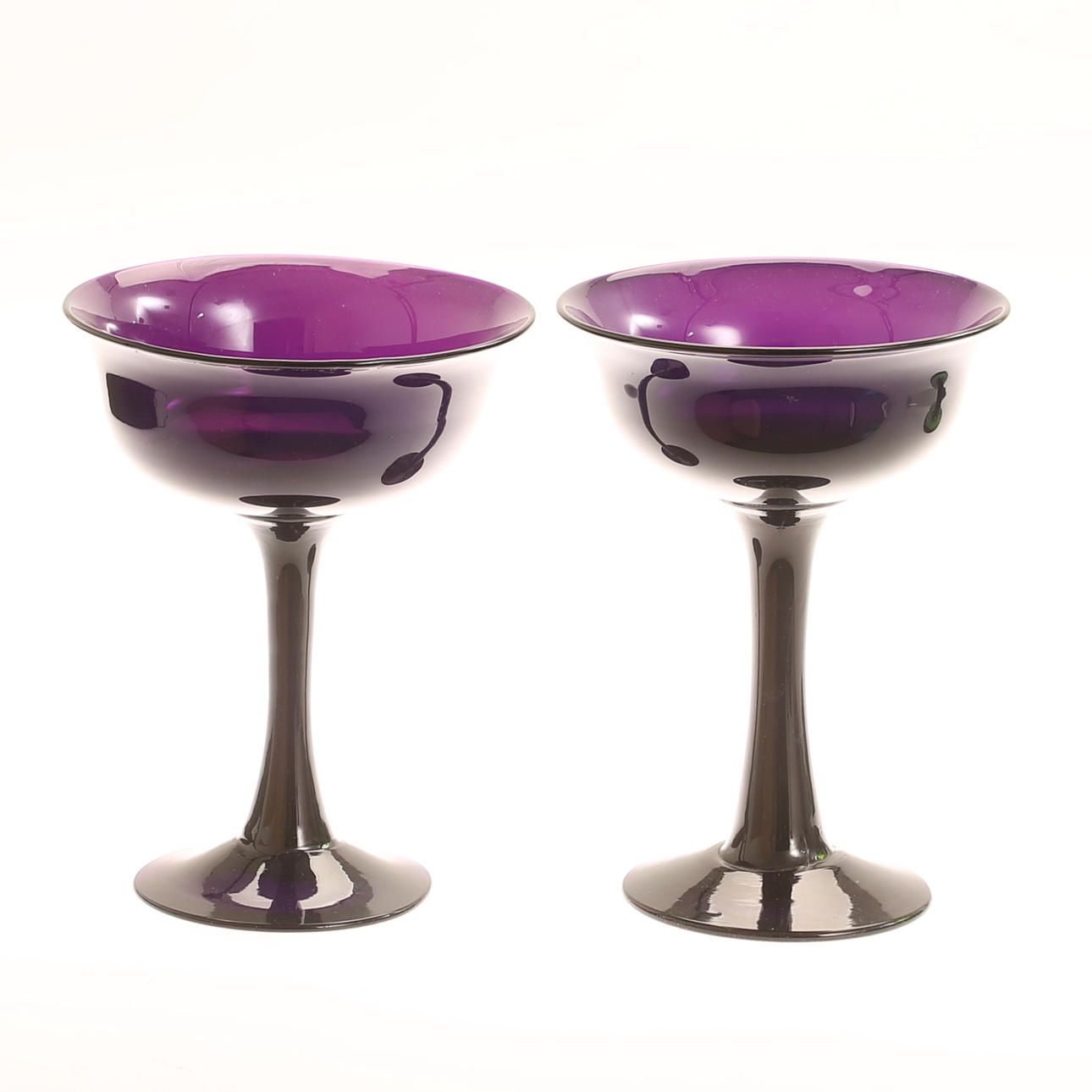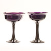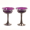 Skålar på fot, ett par, lila glas, höjd ca 19,5 cm.