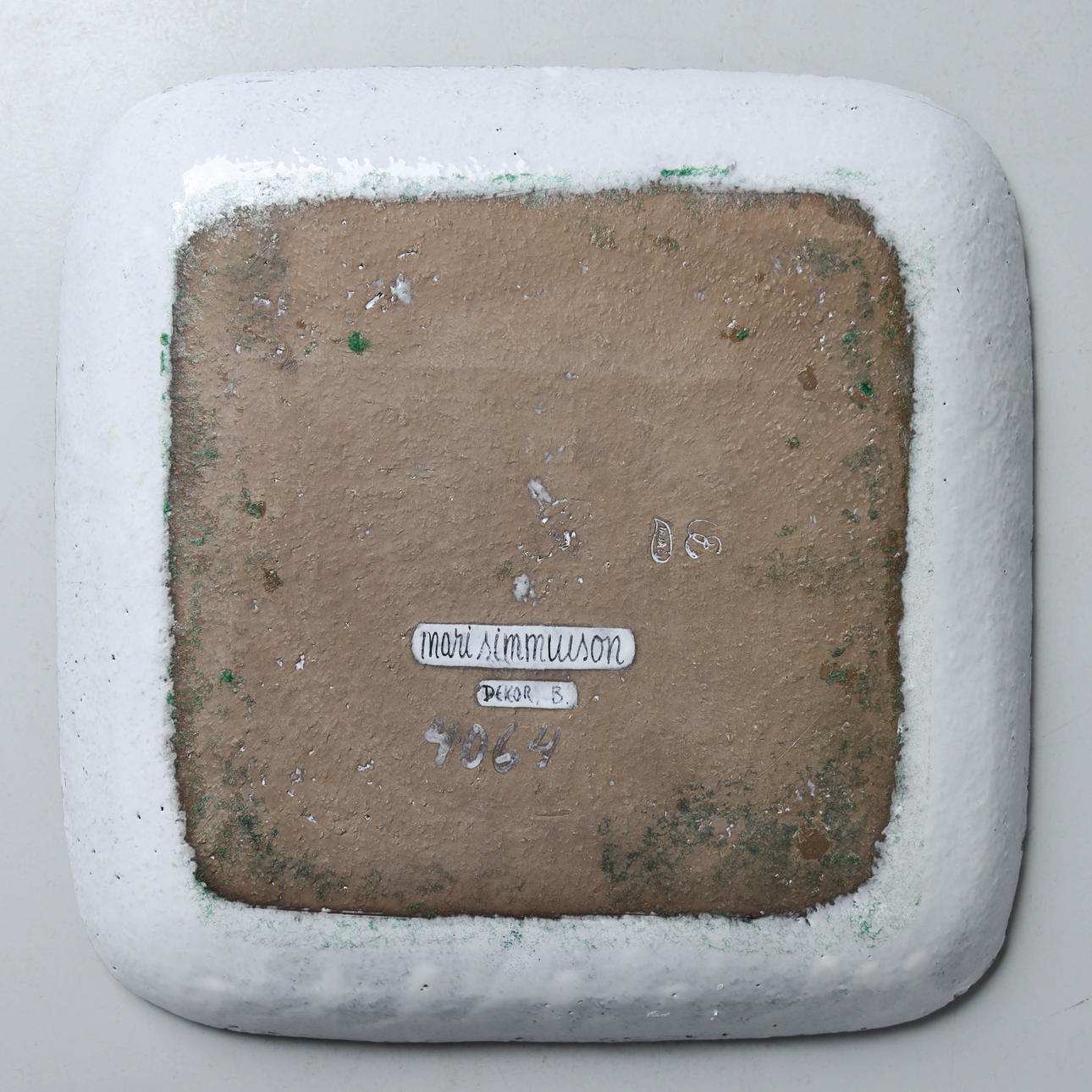 Bakgrund: Mari Simmulson (1911-2000) var den mest allsidiga av Upsala-Ekebys alla formgivare. Hon var konstnär ut i fingerspetsarna, målade på duk och keramik, gjorde offentliga utsmyckningar, designade textilmönster, ritade skämtteckningar för Upsala Nya Tidning och formgav över 200 konstgodsserier i keramik, under sina 22 år på fabriken.