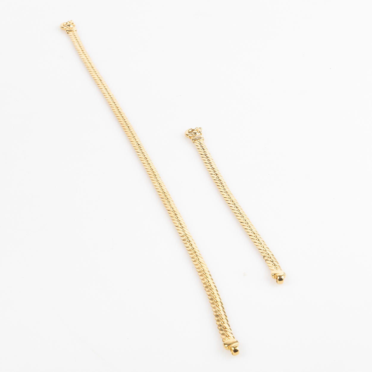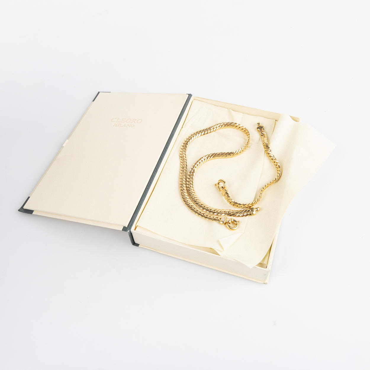Collier:ets längd 45 cm, armbandets längd 19,5 cm. Total vikt 47,6 g. I ask märkt 'Cleoro, Milano'.