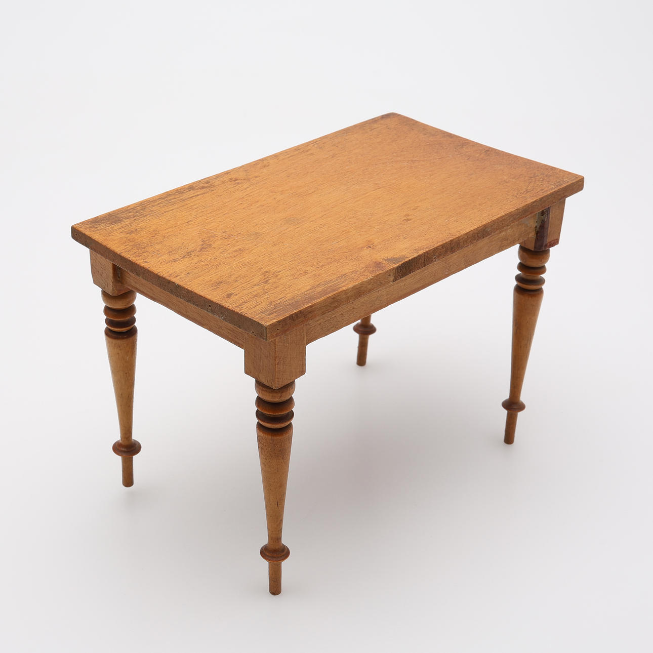 Matbord, längd 21, bredd 12, höjd 14,5 cm.