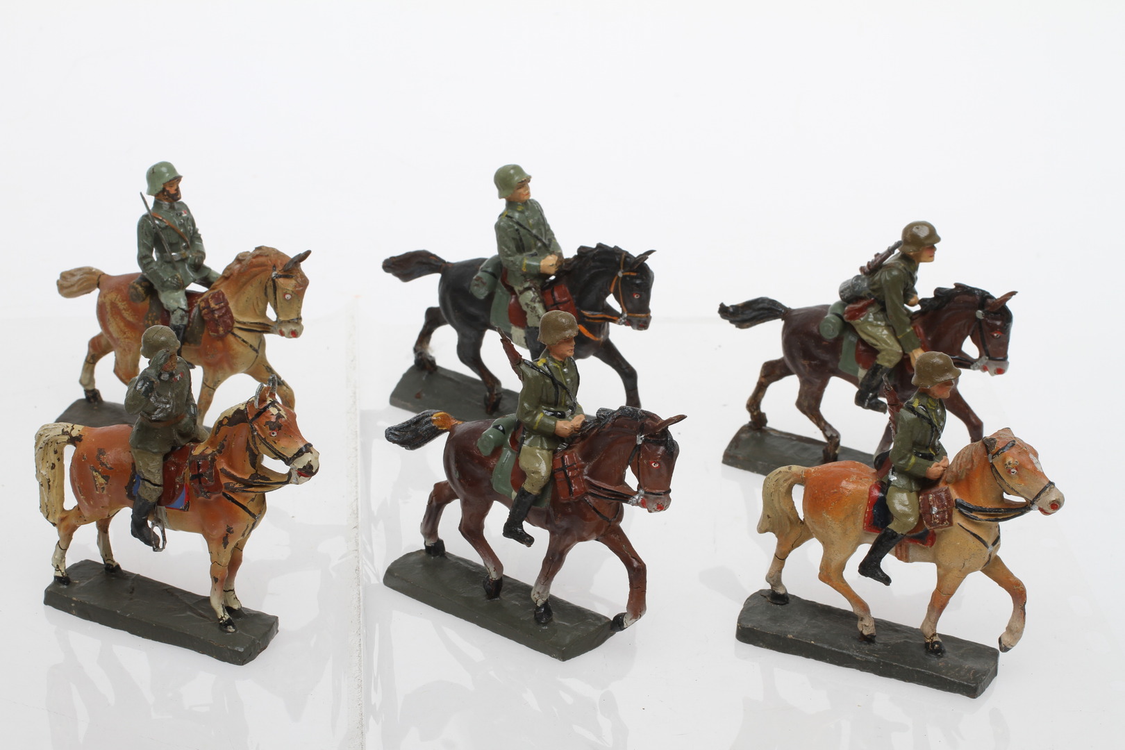 49007. ELASTOLIN 6 tyska soldater till häst .