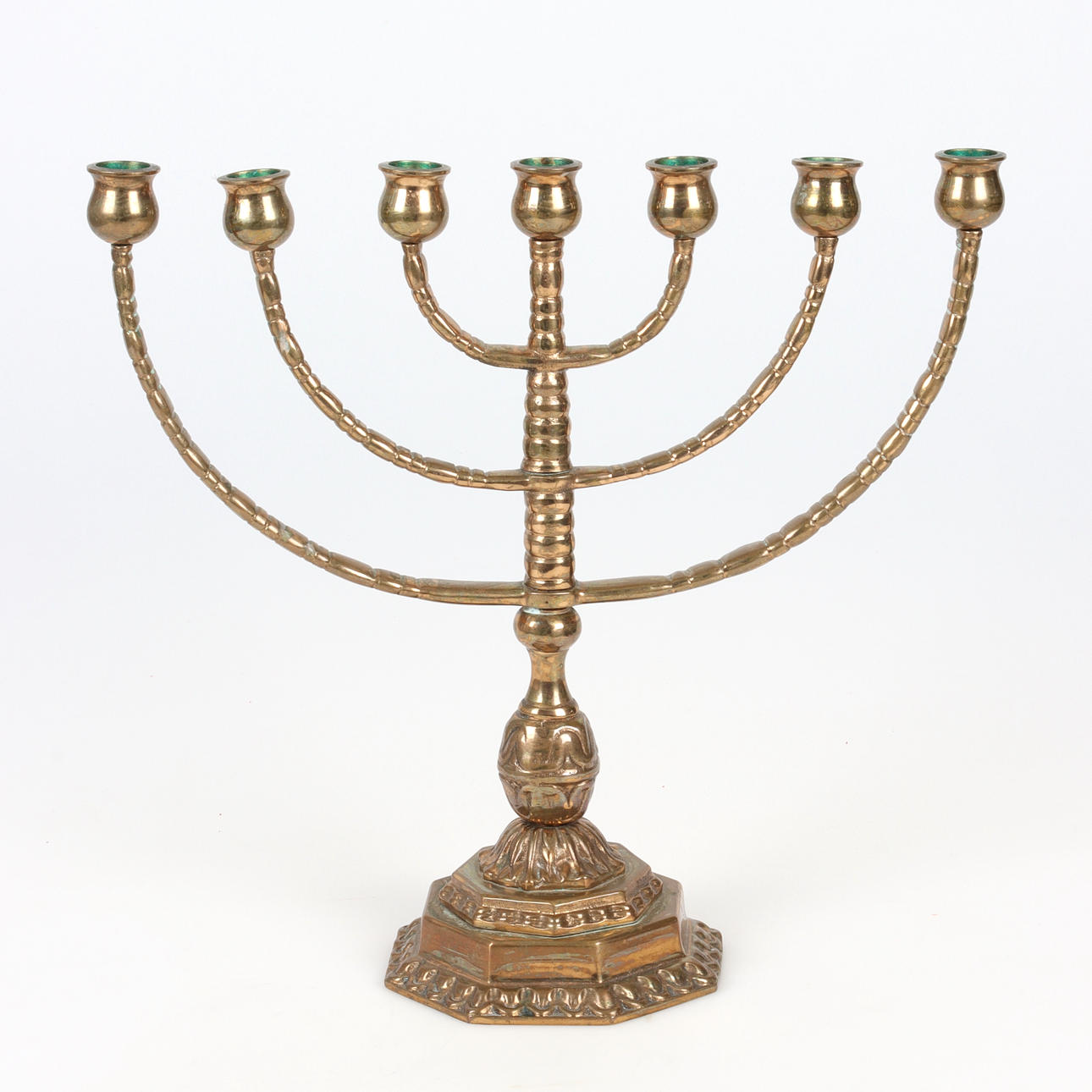 Bruks- och åldersrelaterat slitage, något sneda ljusarmar.