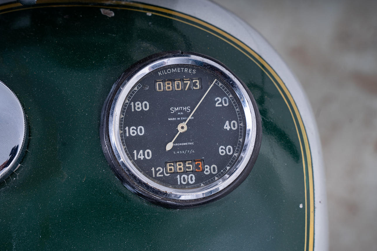 Övrigt: dokumentation följer såsom avdrag av äldre registreringspapper från Länsstyrelsen 1954, fakturor från renovering, BSA - Workshop Manual, packningar, kopior på reservdelskataloger m.m.