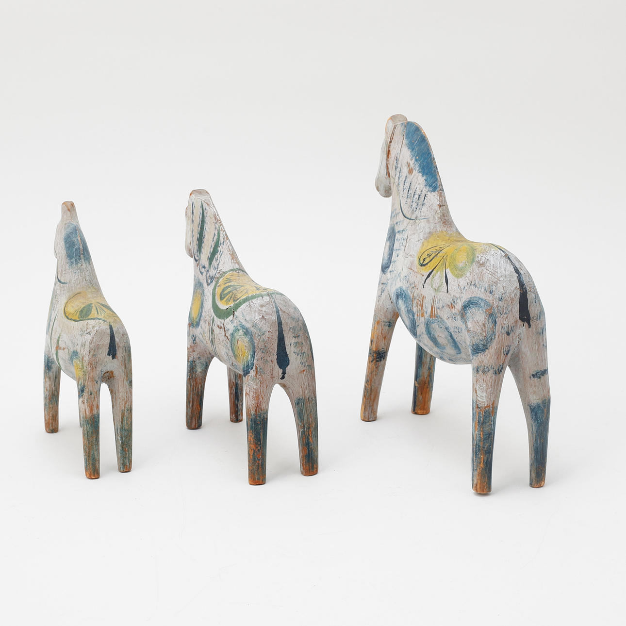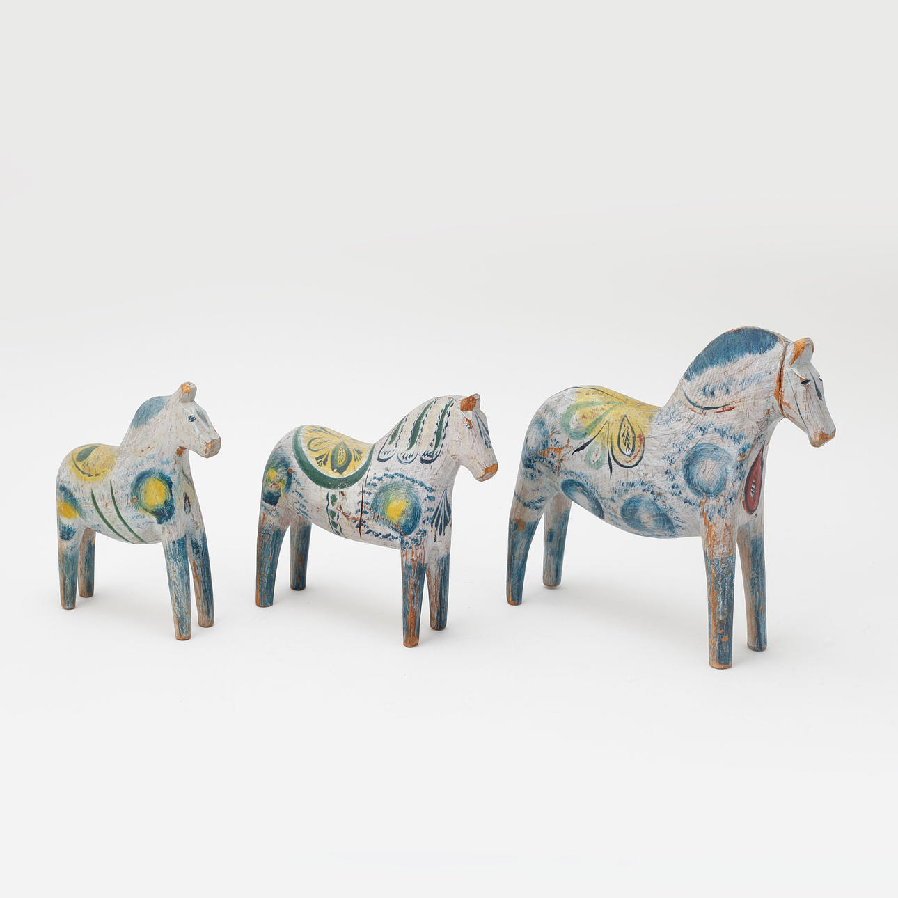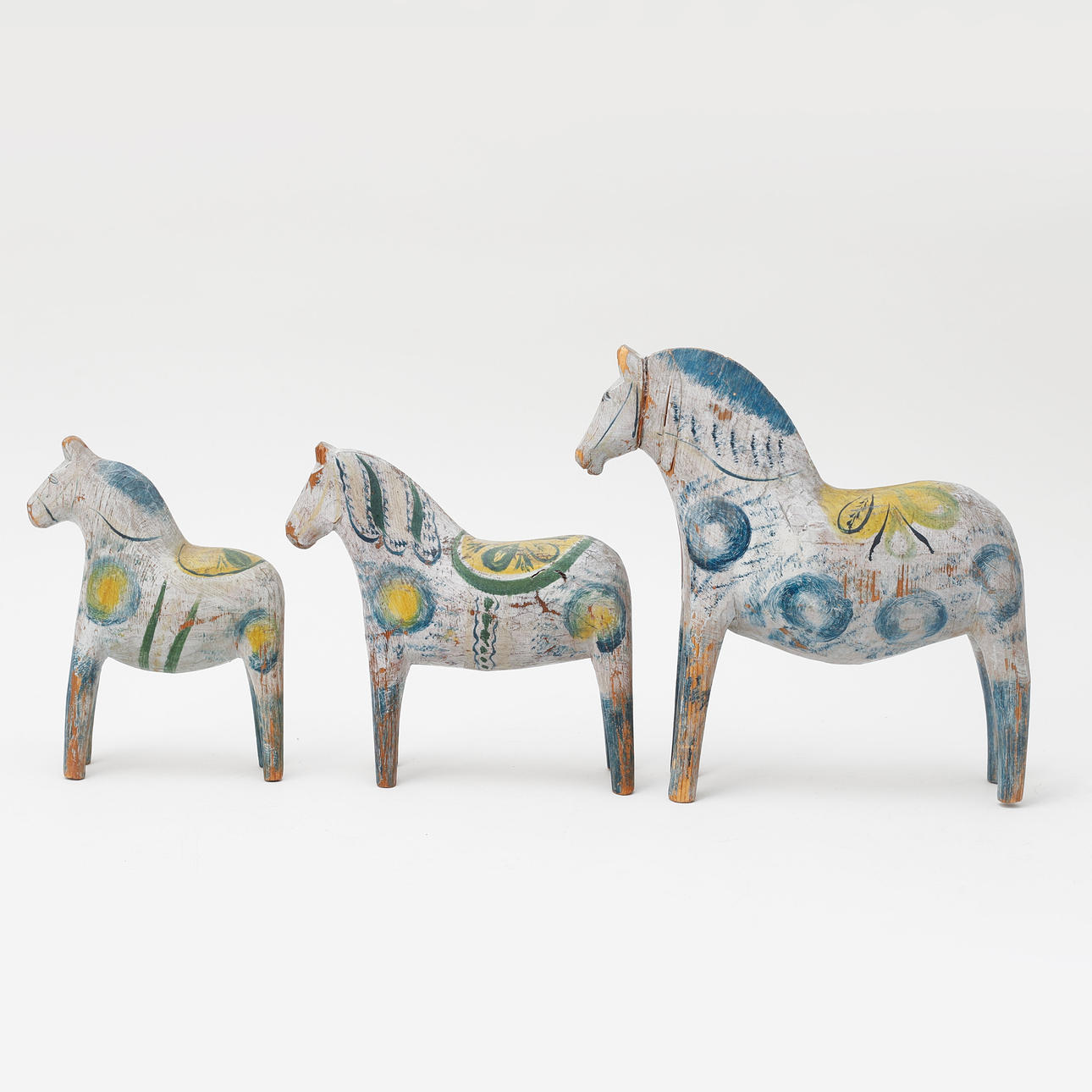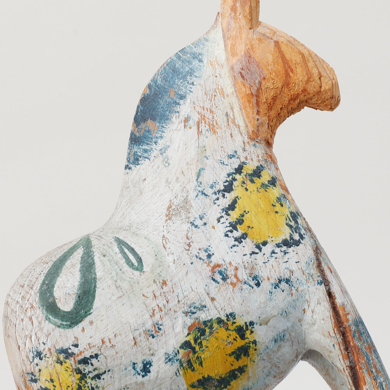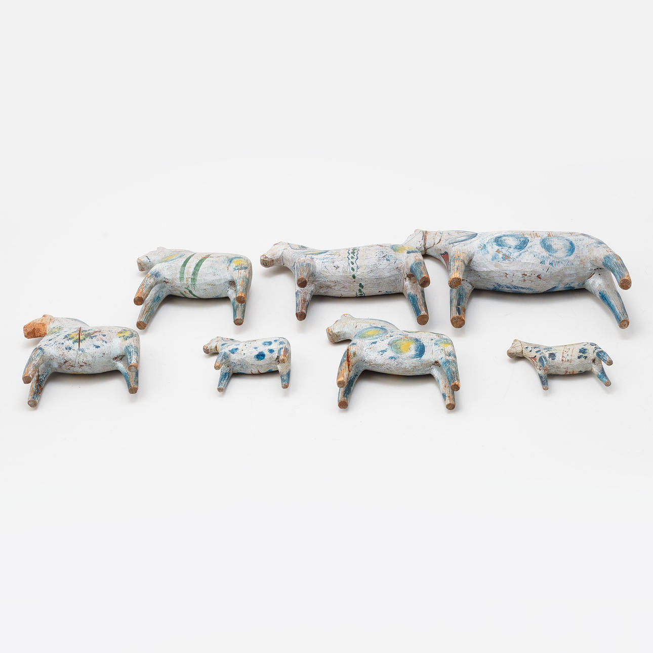 Polykromt bemålat trä. Längd ca 8,5 - 23 cm. Höjd ca 9 - 22,5 cm.