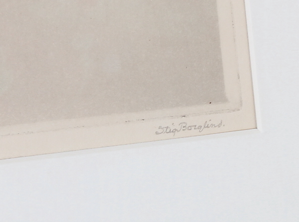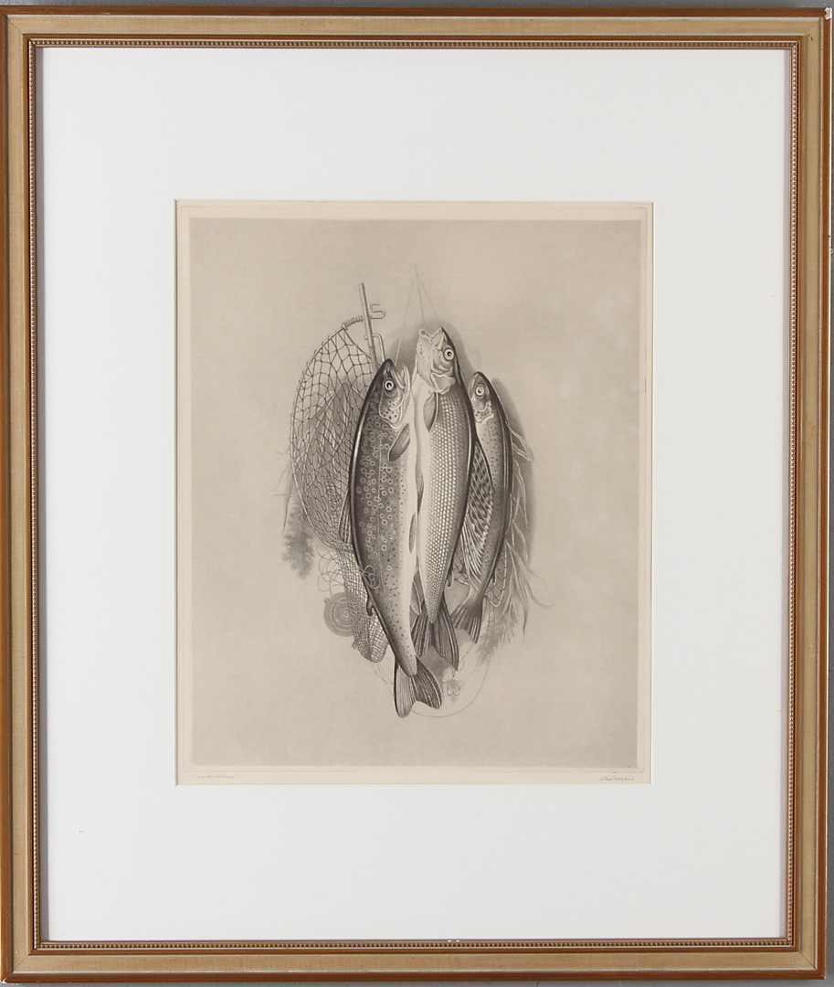 490341. STIG BORGLIND. "Harr och laxöring", etsning, signerad.