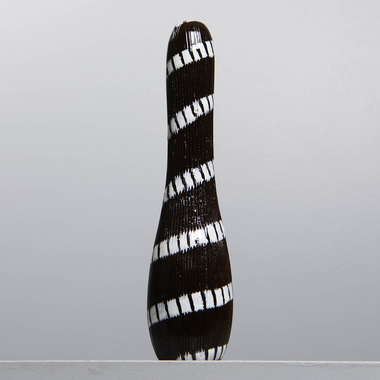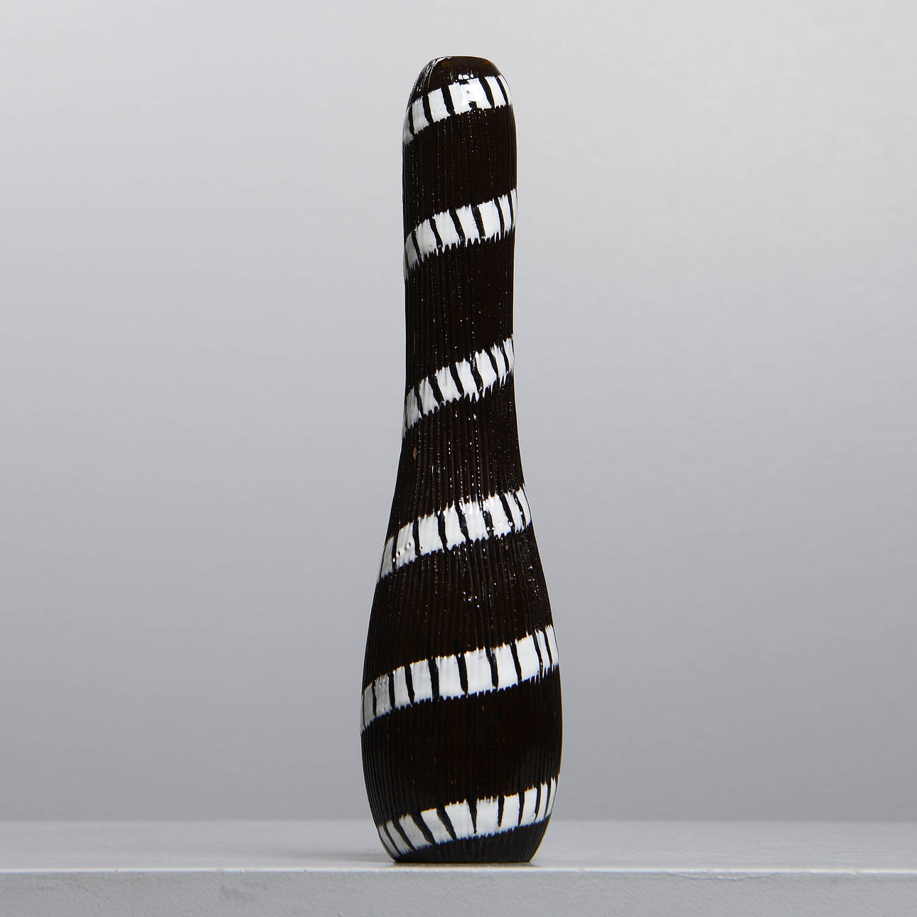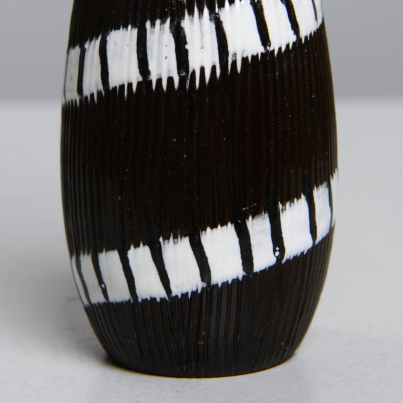 Bakgrund: Den av formgivarna på Upsala-Ekeby som var närmast leran, materialet, var Ingrid Atterberg (1920-2008). Hon experimenterade alltifrån första början, som den skolade keramiker hon var, med leror, glasyrer och tekniker. Till exempel återupplivade hon svartleran, en blandning av rödlera och manganoxid, och gjorde den till ett effektfullt inslag i många konstgodsserier, inte bara hennes egna; hon fick också fram en serie, Sintergods, som lyckades frambringa stengodseffekter ur den uppländska leran; hon hittade även på ett sätt att använda sig av chamottelerans effekter utan att behöva dreja den.