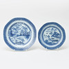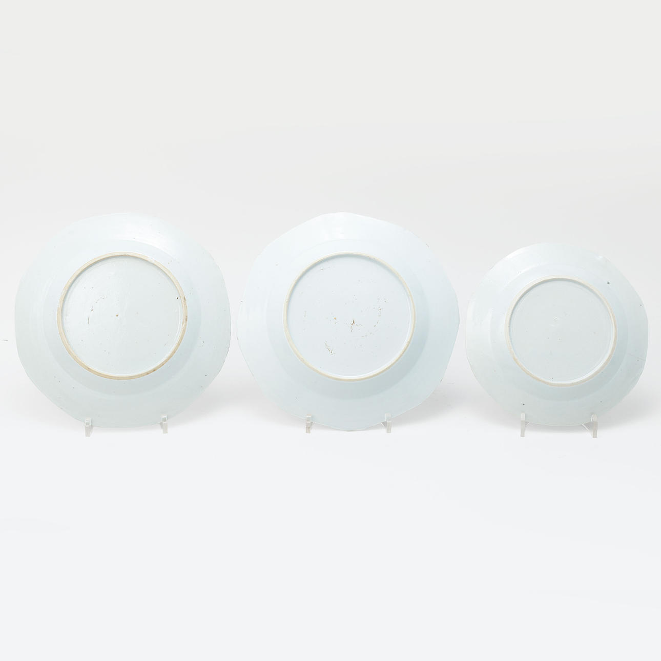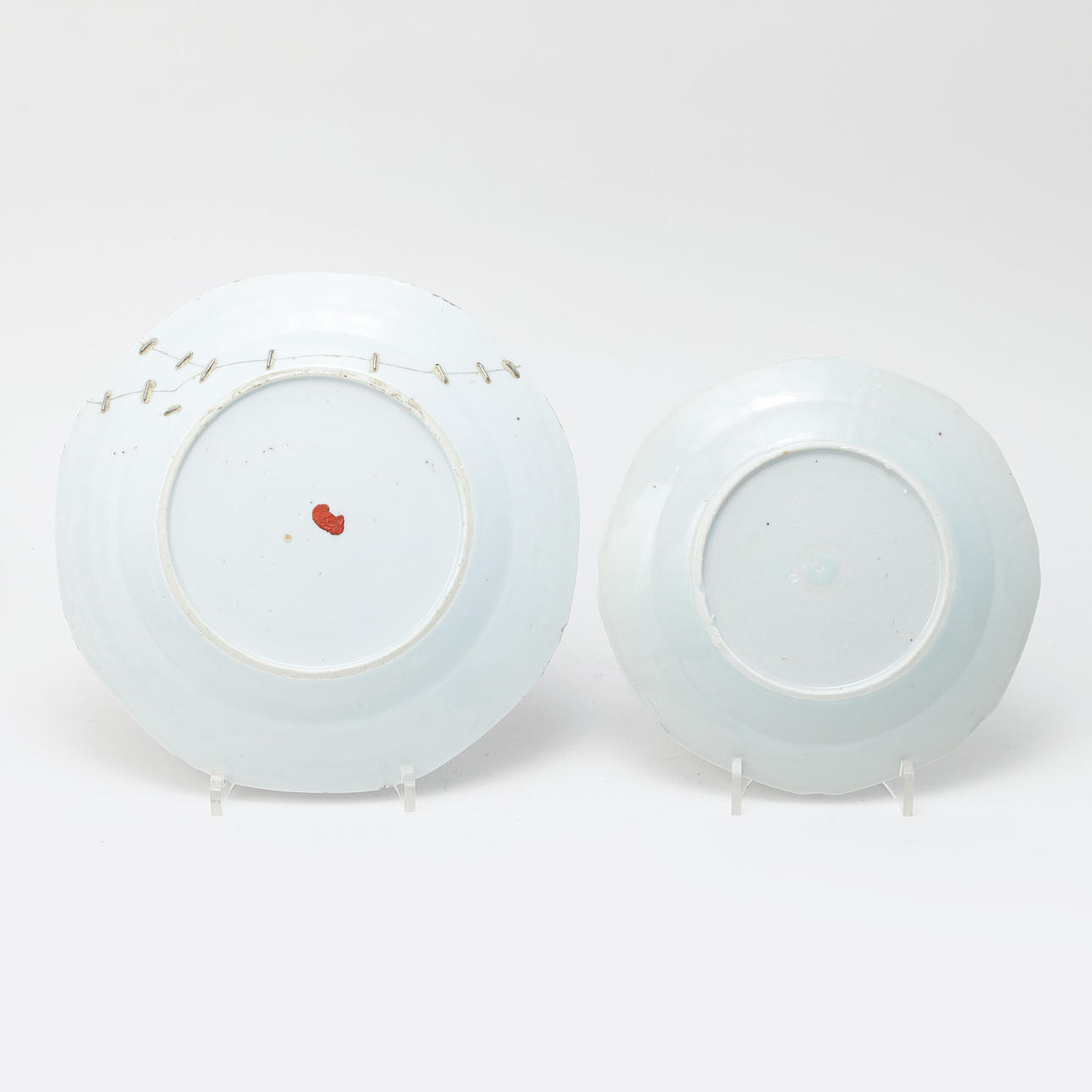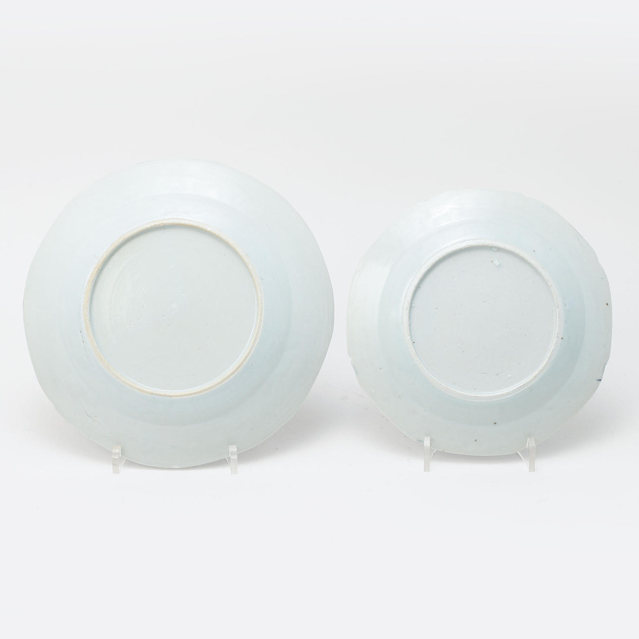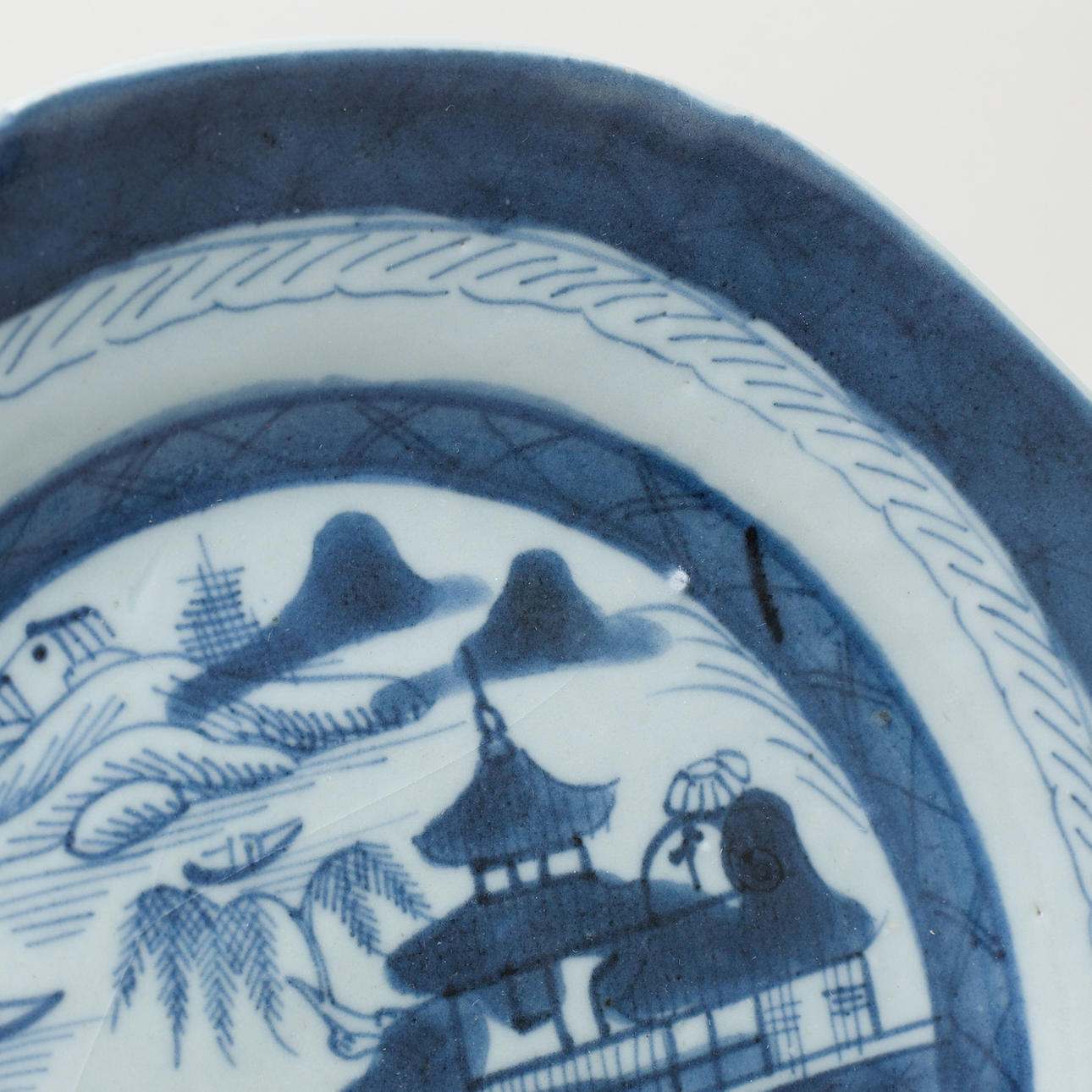 Dekor i underglasyrblått av pagoder. Diameter ca 19-23 cm.