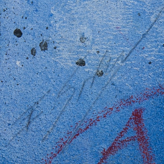 Abstrakt komposition i kraftfull färgskala med dominerande blått fält, geometriska former, linjeelement och symboliska markeringar. Strömbergs konst kännetecknas av ett experimentellt arbetssätt där olika material och tekniker kombineras, ofta med inspiration från musikens rytm och struktur.