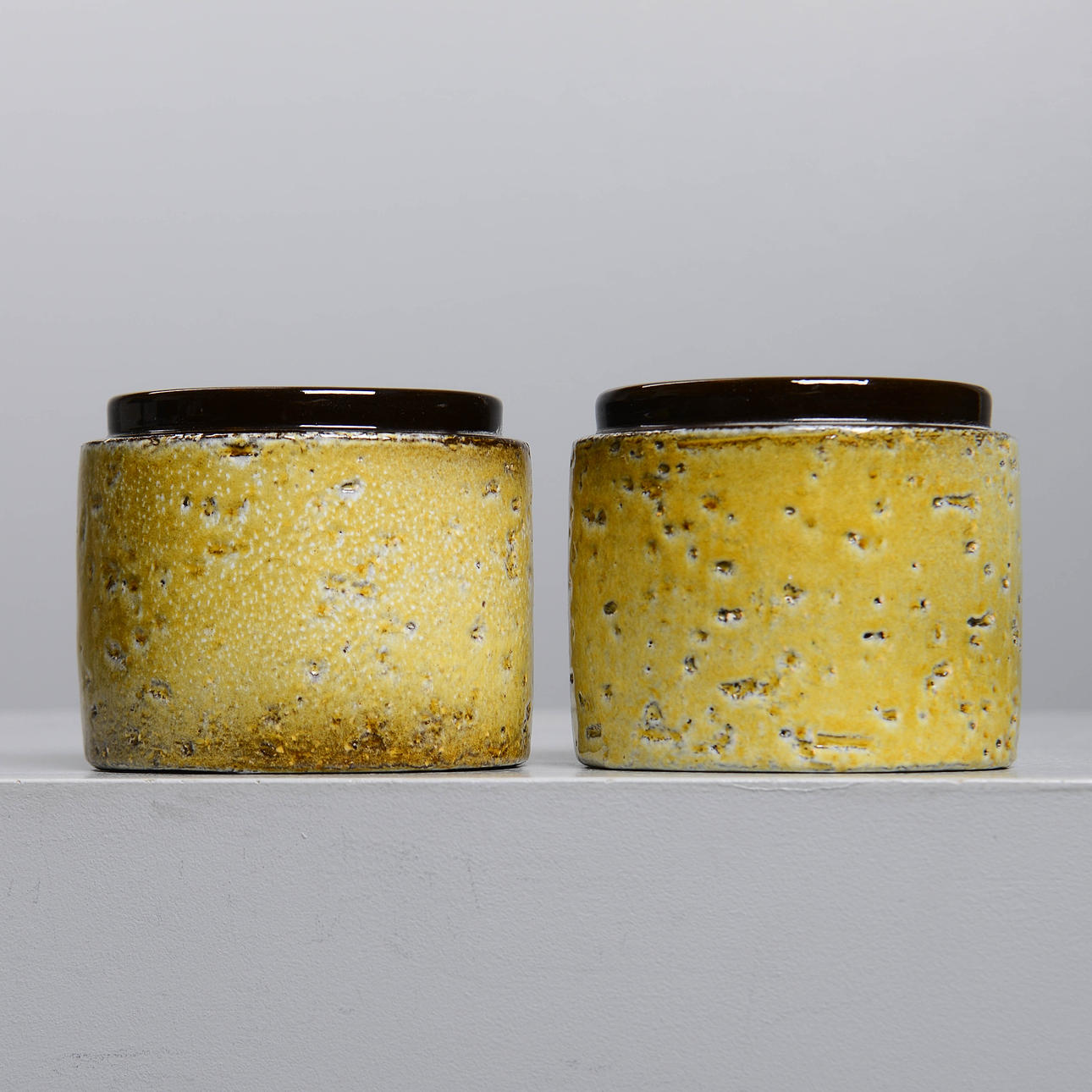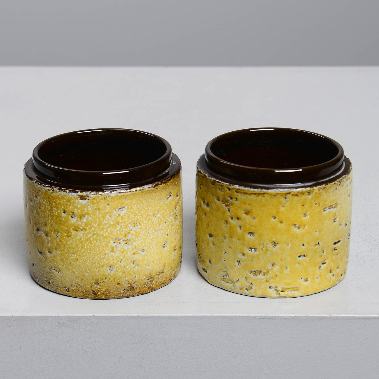 Bakgrund: Den av formgivarna på Upsala-Ekeby som var närmast leran, materialet, var Ingrid Atterberg (1920-2008). Hon experimenterade alltifrån första början, som den skolade keramiker hon var, med leror, glasyrer och tekniker. Till exempel återupplivade hon svartleran, en blandning av rödlera och manganoxid, och gjorde den till ett effektfullt inslag i många konstgodsserier, inte bara hennes egna; hon fick också fram en serie, Sintergods, som lyckades frambringa stengodseffekter ur den uppländska leran; hon hittade även på ett sätt att använda sig av chamottelerans effekter utan att behöva dreja den.