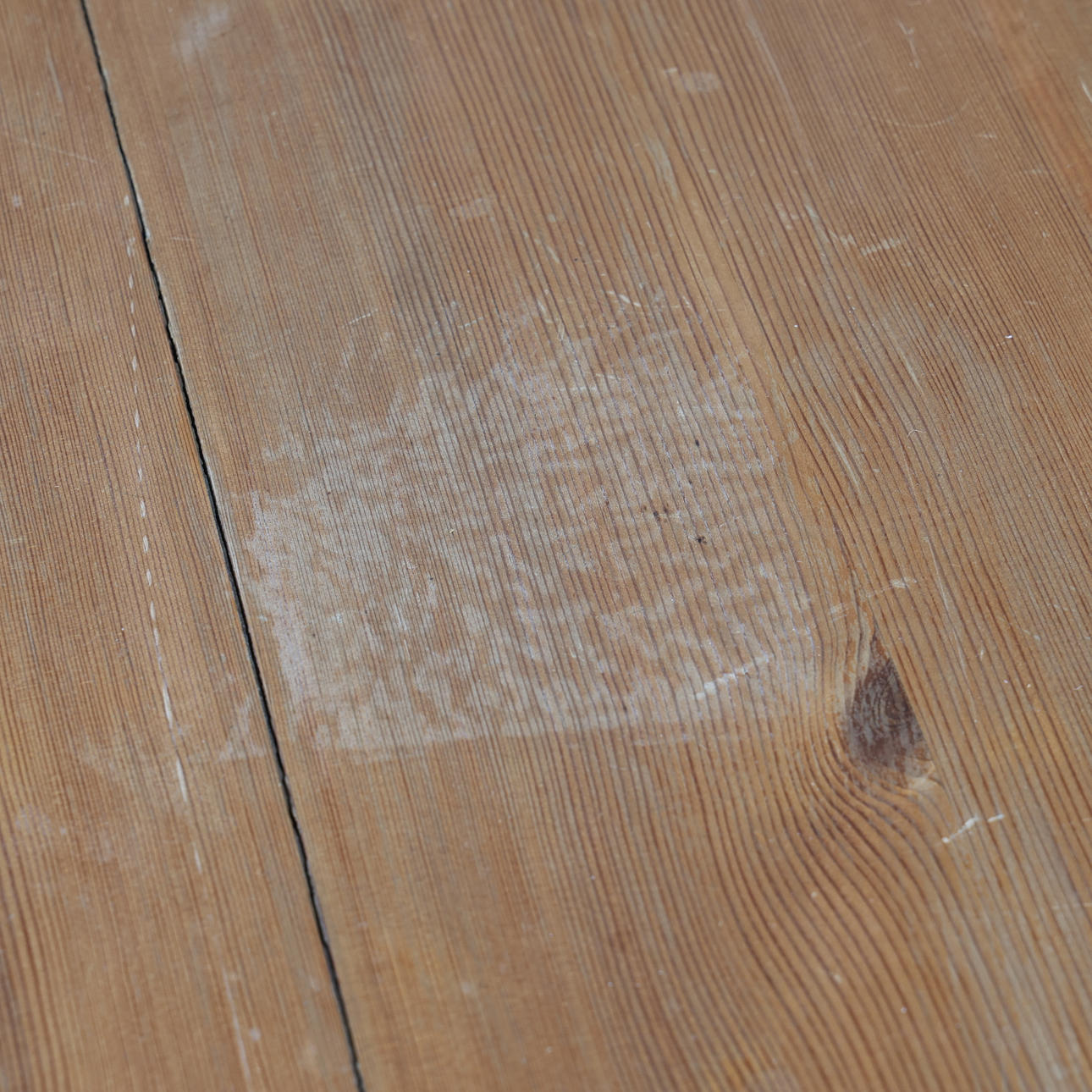 Bruks- och åldersrelaterat slitage. Nött och märken, kantlist del saknas.
